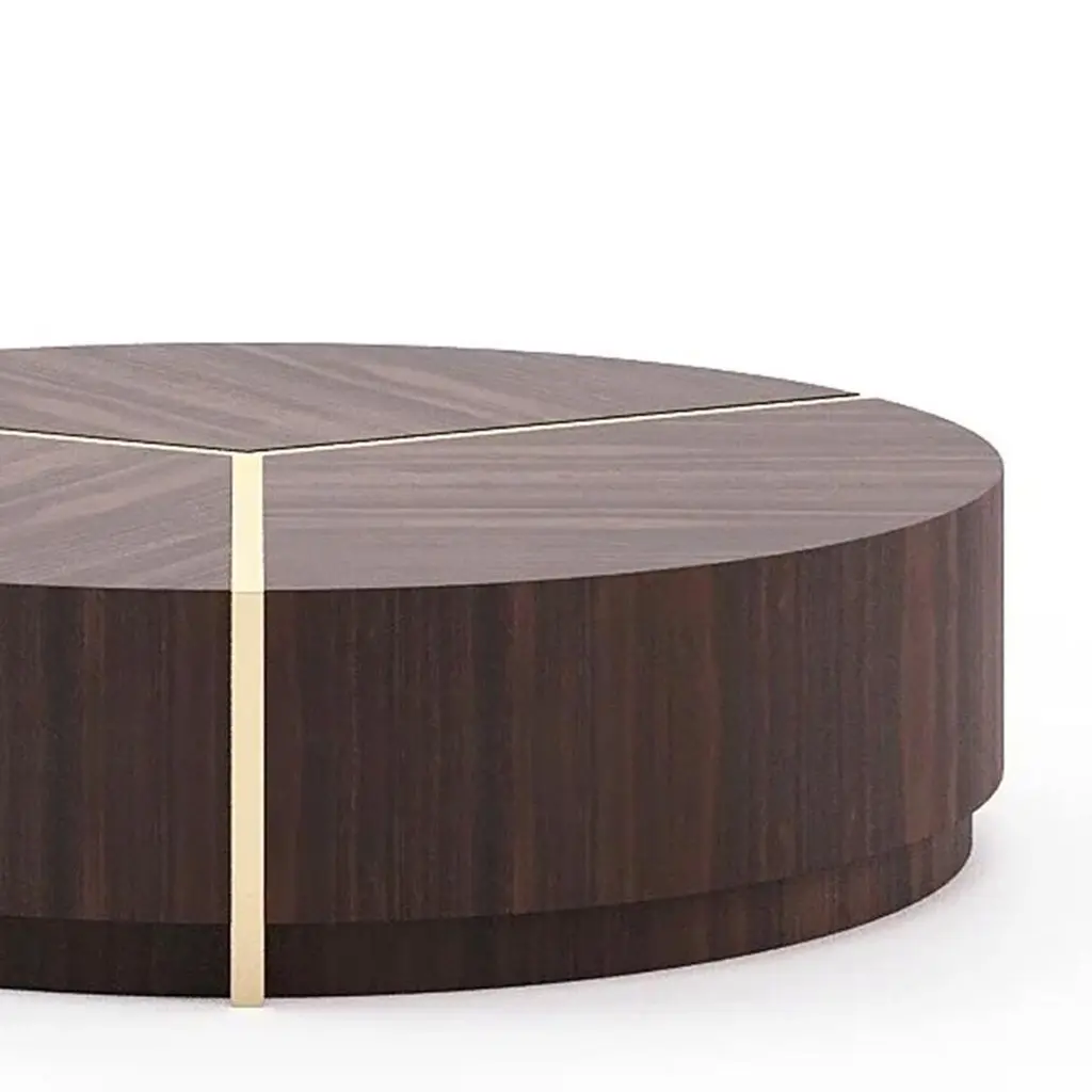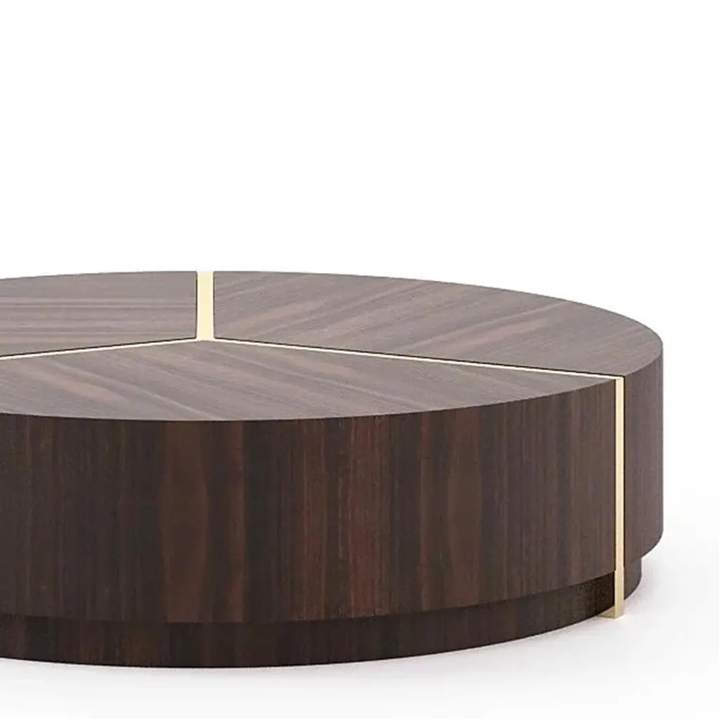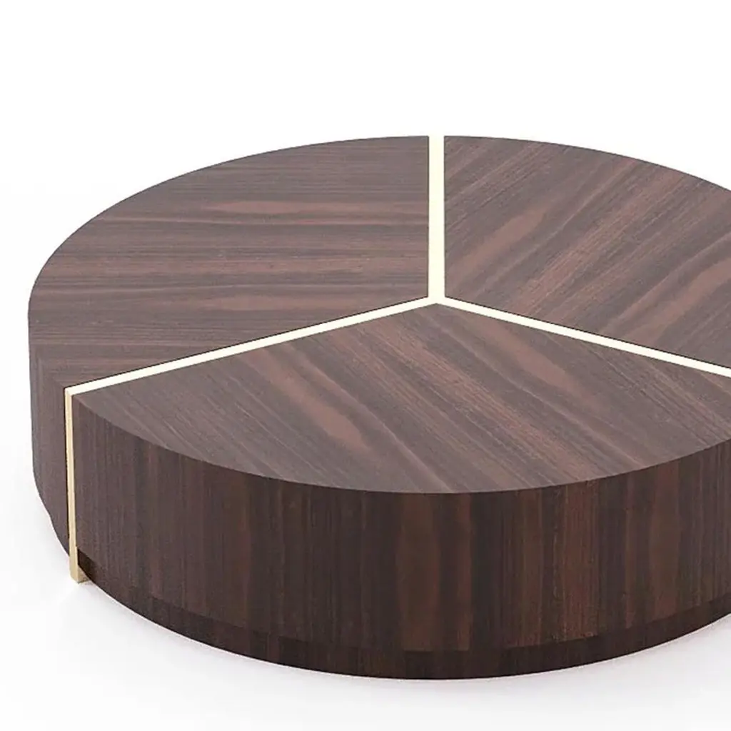 Coffee table Sega with structure in smocked eucalyptus veneeredwood in matte finish, with polished stainless steel trims in gold finish.Also available in ebony matte finish, or grey oak matte finish,or natural oak finish, or rosewood matte finish, or in walnutmatte finish, on request.
