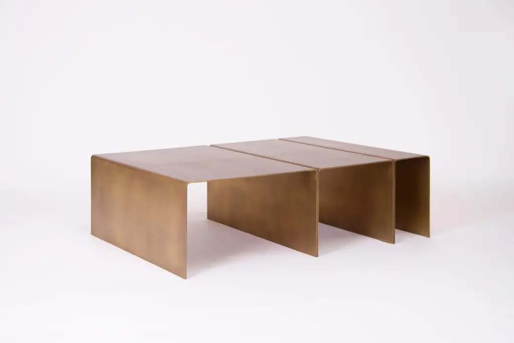 The SEGMENT Coffee Table is part of the Segment Collection: a series of pieces that intend to break down a homogenous piece and present the question of how to produce several products composed of separate pieces that have a similar understanding between each other.This table is made of brushed aluminum. It can also be made in solid burnished brass or solid blackened steel.