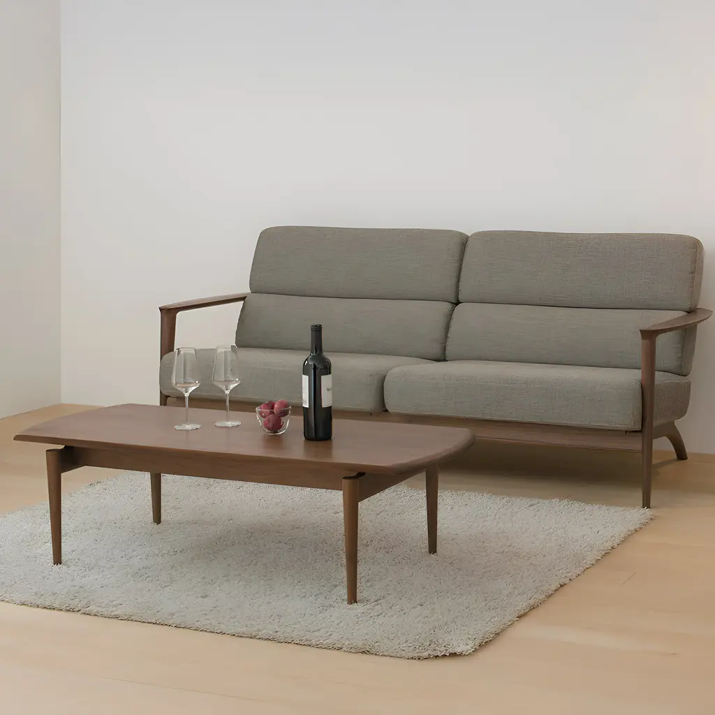 Designed by Motomi Kawakami, the table features a gracefully curved edge and slender legs, creating a light and elegant appearance. Available in walnut. The Seoto series is named after the Japanese term for the sound of a flowing stream, reflecting the collection's aim to evoke a sense of tranquility and natural beauty.