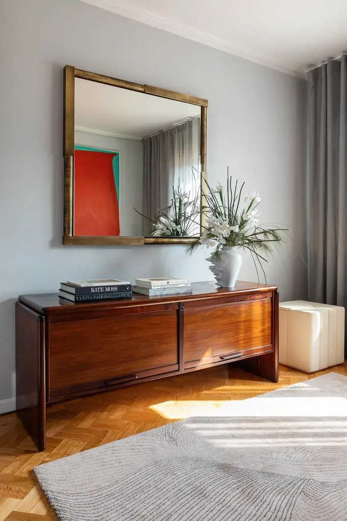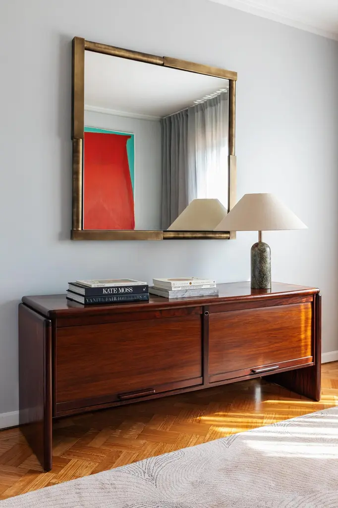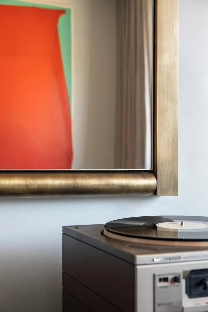 Sequence mirror by Marta Delgado StudioModel on the picture:Square wall-mirrorMetal: BrassFinish: BrushedDimensions:Width: 47.2” 120 cm Depth: 2.4” 6 cm Height: 47.2” 120 cmMarta Delgado is a Portuguese artist, she founded her design studio after several years of working in furniture and interior design. The pieces signed Marta Delgado are luxurious and original. She seeks to create timeless furniture and for this she works with noble materials that will last over time. Marta Delgado Studio presents in this collection seats like the Divergent sofa and armchair, coffee tables such as Equation and a large square mirror Sequence.