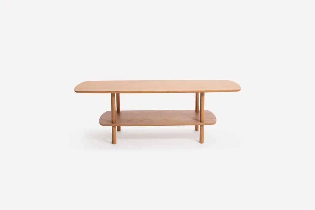 Immerse yourself in mid-century Danish Modernism with the Serif Coffee Table. Crafted from solid wood, this table exudes elegance with its soft edge radius and sturdy build. With just ten simple parts coming together, this proportional table is not only a perfect fit for the Nomad Sofa and King Sofa, but for any interior design scheme. | Burrow Serif Coffee Table
