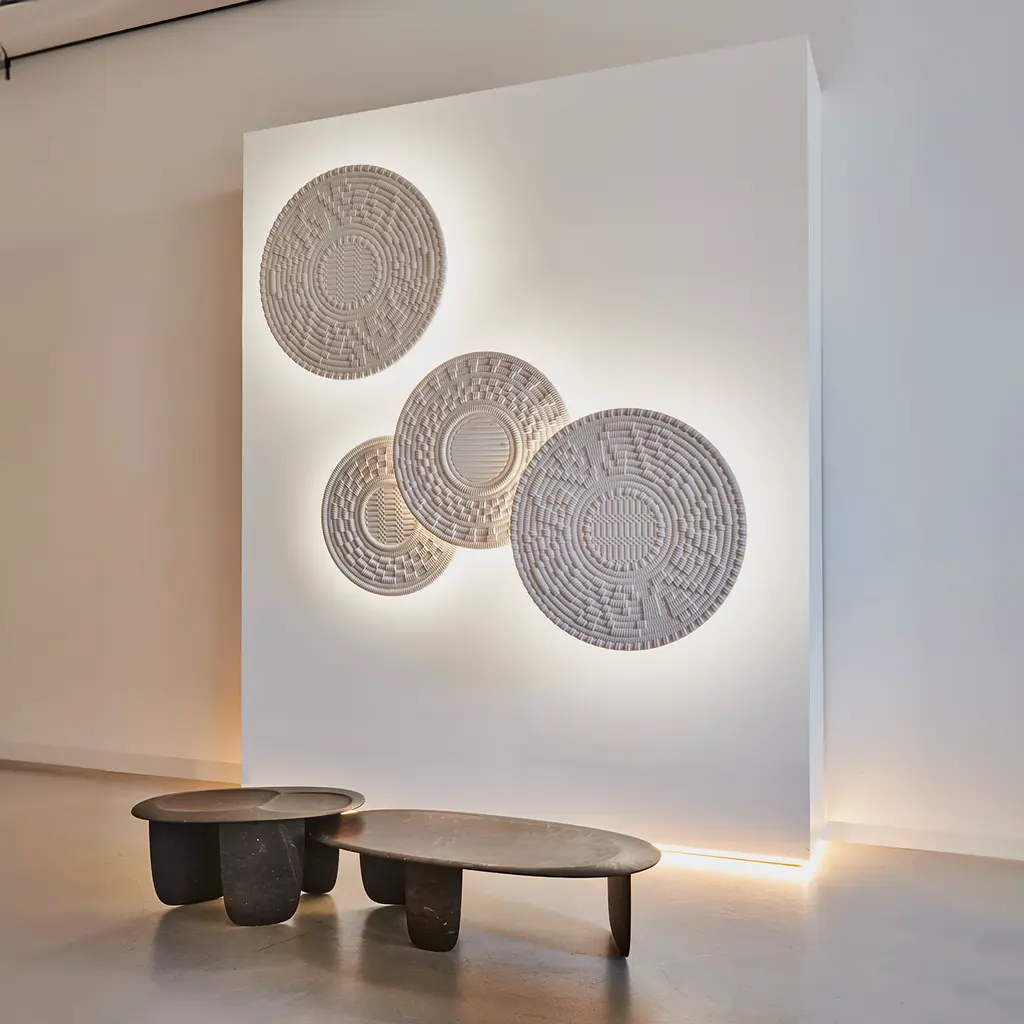 SESI A - coffee table in Brown Stone Small is a stone table recognizable by the unique curved lines which resemble the pebbles marked by the seawater, placed one on top of the other, like balancing building blocks on the seashore. It is named after the enigmatic, commemorative buildings shaped like truncated cones or more precisely like the typical Seso buildings found around the island. Please ask Concierge for details.