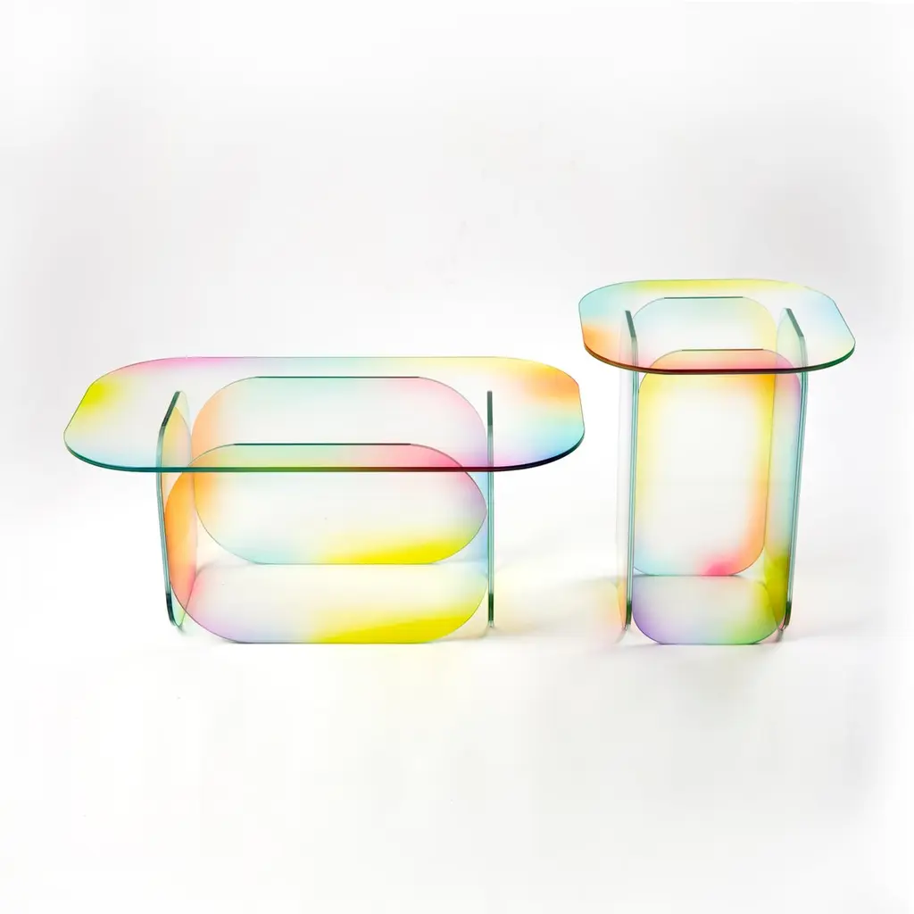 Set Of 2 Candy Dichroic Glass Coffee Table Sculpted By Studio-Chacha