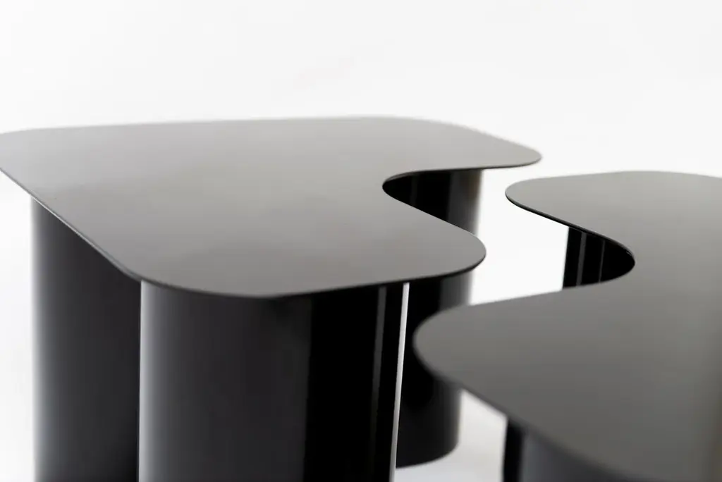Set of 2 object 069 coffee tables by NG DesignDimensions: D120 x W60 x H35 cm.Materials: Powder coated steel.Also available: All of objects available in different materials and colors on demand.The Object069 table is a game of form. The solid legs and the irregular shape of the top create a set that is perfectly adapted to current trends. Combine them in pairs to create a uniform long table, or use them separately."Our brand was created out of a passion for unconventional design. The furniture we produce is characterized by the highest quality and attention to detail. Each piece of furniture is handmade in Poland and its design defies a traditional approach. standard of interior design. to an object of uniqueness, which makes it a form in itself".