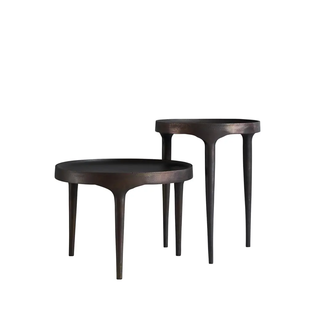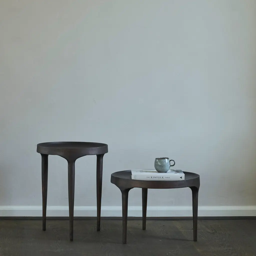 Set of 2 Phantom tables low by 101 CopenhagenDesigned by Kristian Sofus Hansen & Tommy HyldahlDimensions: L 50 / W 50 /H 35 CMMaterials: Cast ironCharacterized by its intentional naive and handmade expression and raw, unpolished surface, the Phantom table reveals its unique casting technique. The series is at once fragile, delicate, and bulky in its appearance. The Phantom coffee tables are available in a tall and a low version made of cast iron and hand painted in a beautifully burned antique color, giving the tables a sophisticated and subtle expression. 101 Copenhagen is a Danish design brand founded in 2017. With a vision to honor exquisite quality and craftsmanship, the collection encompasses furniture, lighting and accessories in a timeless, yet modern design. With a true passion for materials and refined textures, organic shapes and colours, 101 Copenhagen presents the epitome of classics and must-have novelties for Scandinavian and international interior connoisseurs alike.