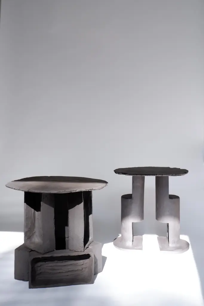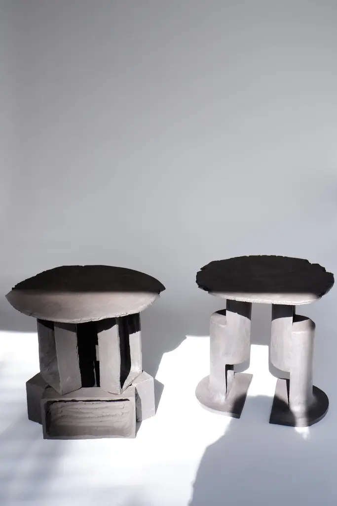 Set Of 2 T01 And T02 Coffee Tables by Ia KutateladzeOne Of A Kind.Dimensions: D 38 x H 37 cm (each).Materials: Black clay.Each piece is one of a kind, due to its free hand-building process. The top is always irregular and one of a kind. Possible material variations: raw black, red or white clay. Dimensions may vary. Please contact us. IAAI / Ia Kutateladze is a Georgian multidisciplinary designer based in Berlin. The production is done by her in the studio, where differentmediums of design and craft are merged together with experimentation, playfulness and fascination for diverse materials.“To me, design is a palette of boundless imagination, intuitive approach, aesthetic sense and adventurousness expressed through forms. Design excellently transforms everyday life into joyful process of invention. My designs are playful objects of affection, which are results of slight and uncomplicated impressions, observations or interpretations. Sheer simplicity and attention to details, integrated with profound understanding of the surroundings, the past and the future, are at the core of my designs. I would like my designs to be more than functional objects, to have the power to magically interact with people."