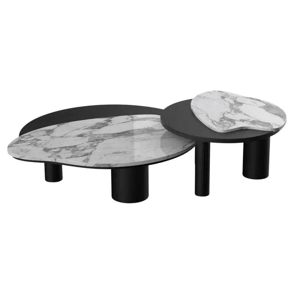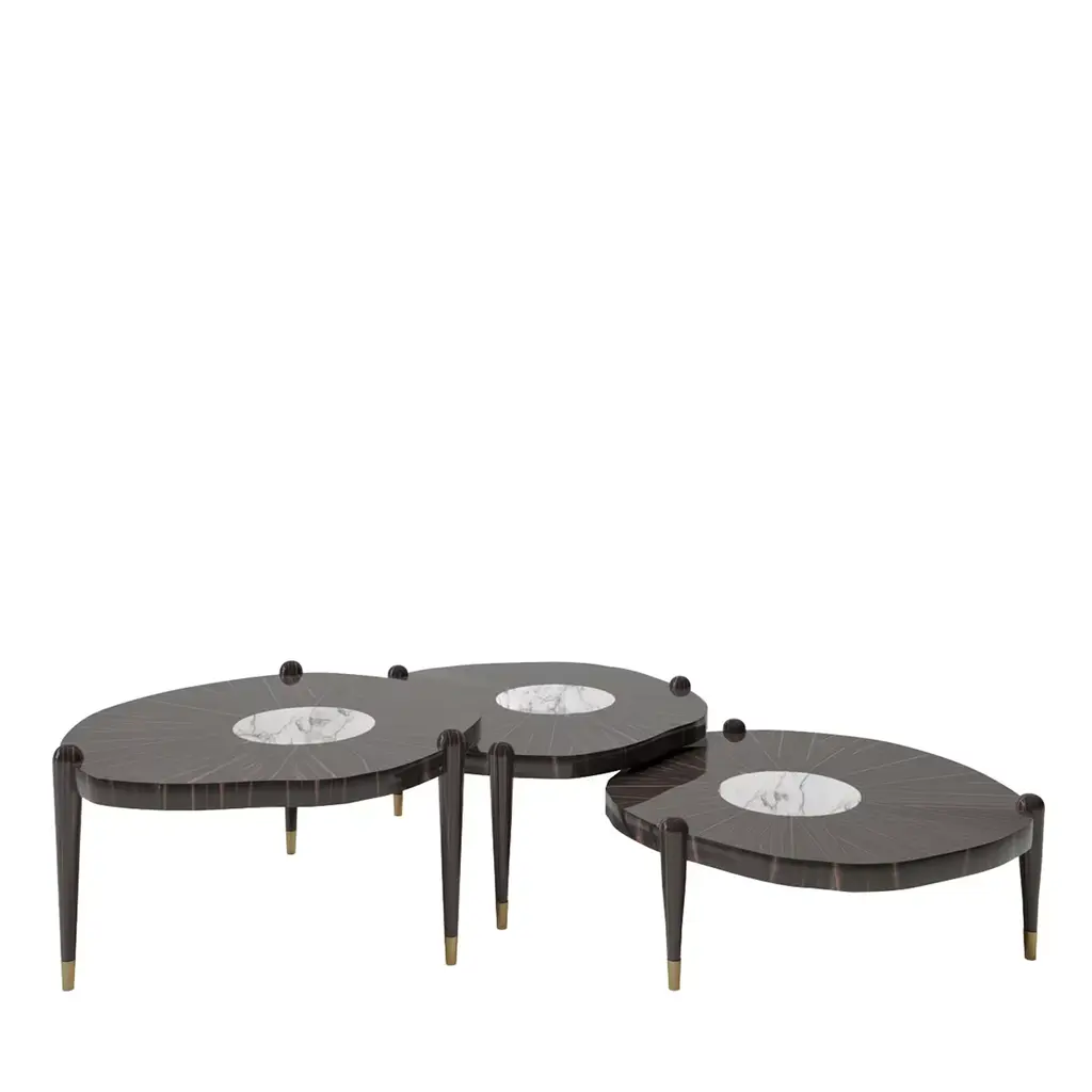 "Yso" is a small round table set that could be juxtaposed or overlapped to create amazing geometric composition. The top is made with a special Fresc technique to obtain a lace effect on porcelain tiles.