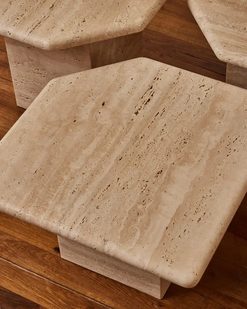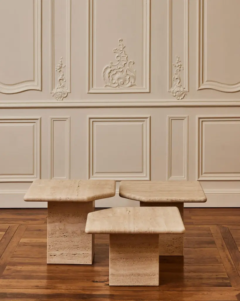 Set Of 3 Coffee Tables In Travertine Stone By Studio Glustin