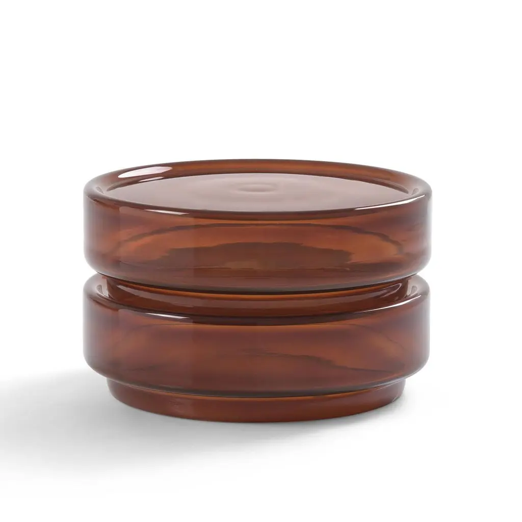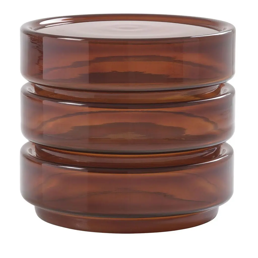 Stack 880 by Niccolò Devetag is a modular collection of colorful blown-glass coffee tables designed with flexibility in mind. Its amber hue interacts elegantly with light, producing warm reflections that enhance any space. The design allows stacking of elements in different colors and heights, creating versatile arrangements. This durable, recyclable piece combines traditional glassmaking values with modern design, reflecting the philosophy of Billiani. The featured version includes three stacked modules.