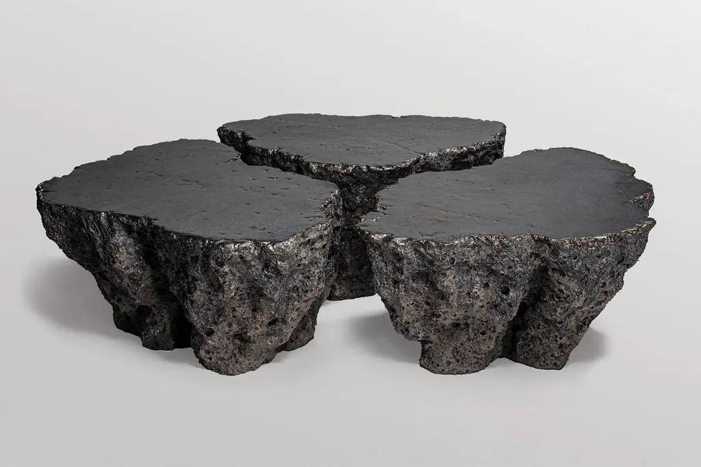 Set Of 3 Unique Naural Form, Dark Grey Ceramicc Coffee Tables By Niclas Wolf