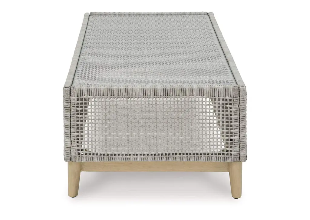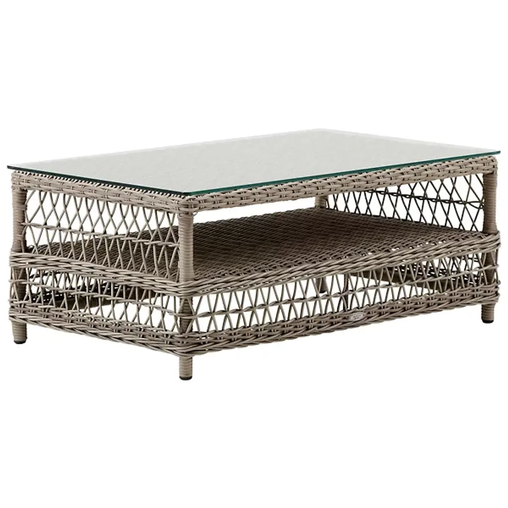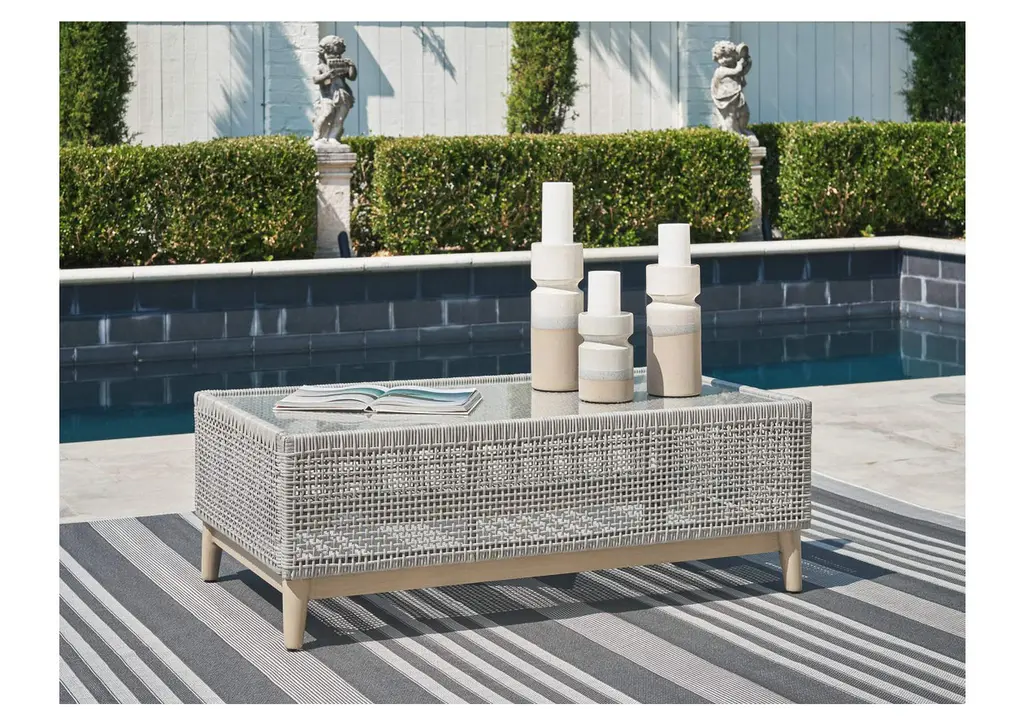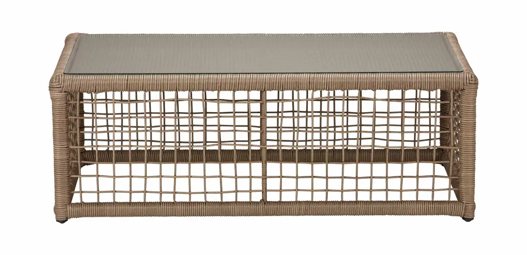 The Seton Creek coffee table invites your casual contemporary style outdoors. With its resin wicker in a chic neutral hue, it expertly marries refined design with durability. Breezy summer mornings and cold winter nights are made all the more enjoyable with a glass tabletop on hand to hold beverages, snacks and your latest poolside read. Weight 68.000 lbs. (30.6kgs.)