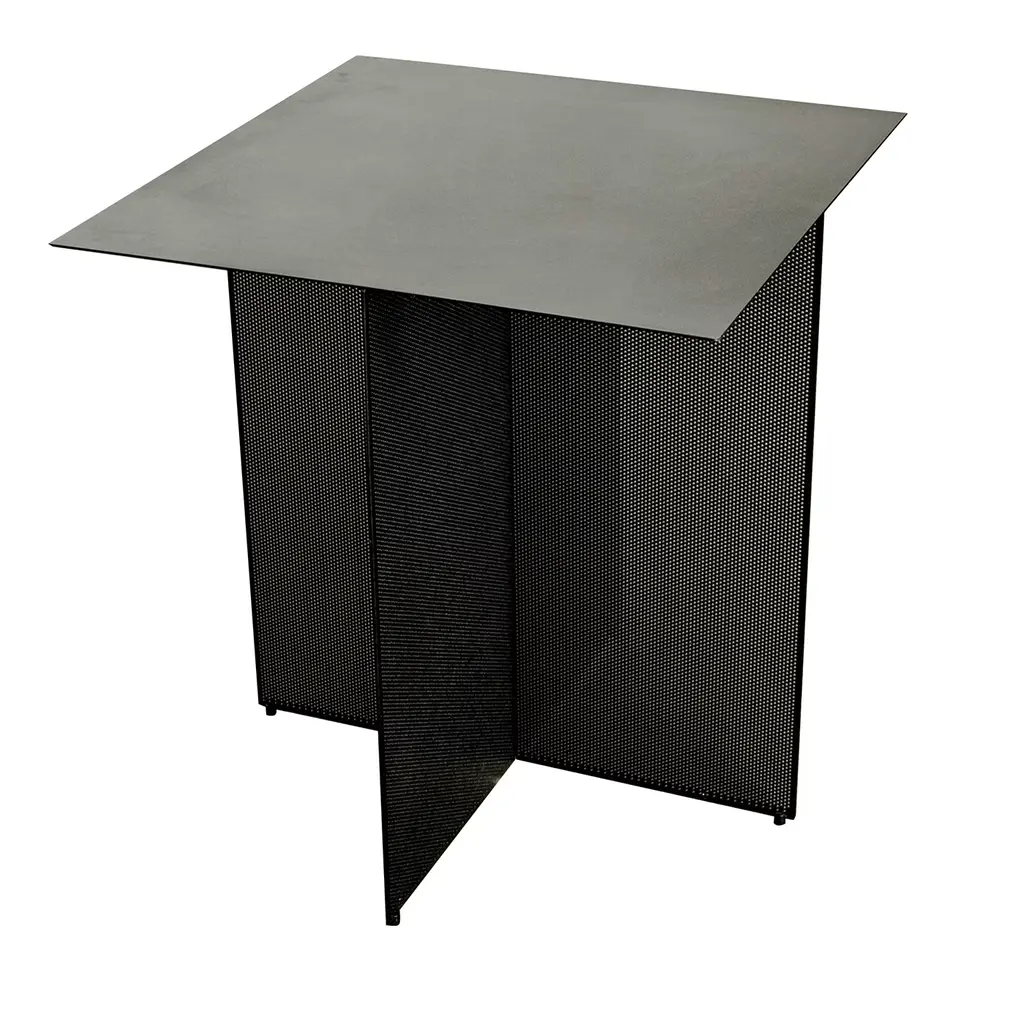 Designer Marco Ripa decided to focus the designs from the Sezioni Collection on the deconstruction of solids, maintaining only their inner sections. Crafted of white-finished iron and welded by hand, this coffee table boasts an unmistakable minimalist silhouette, where a square top is raised on a base with two intersecting panels. A dense openwork design characterizes the panels, resulting in charming dotted motifs on floors when crossed by the light. Please ask the Concierge for variants.