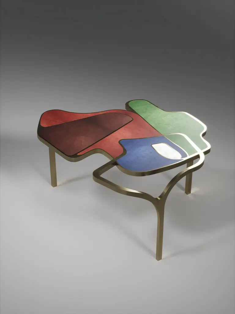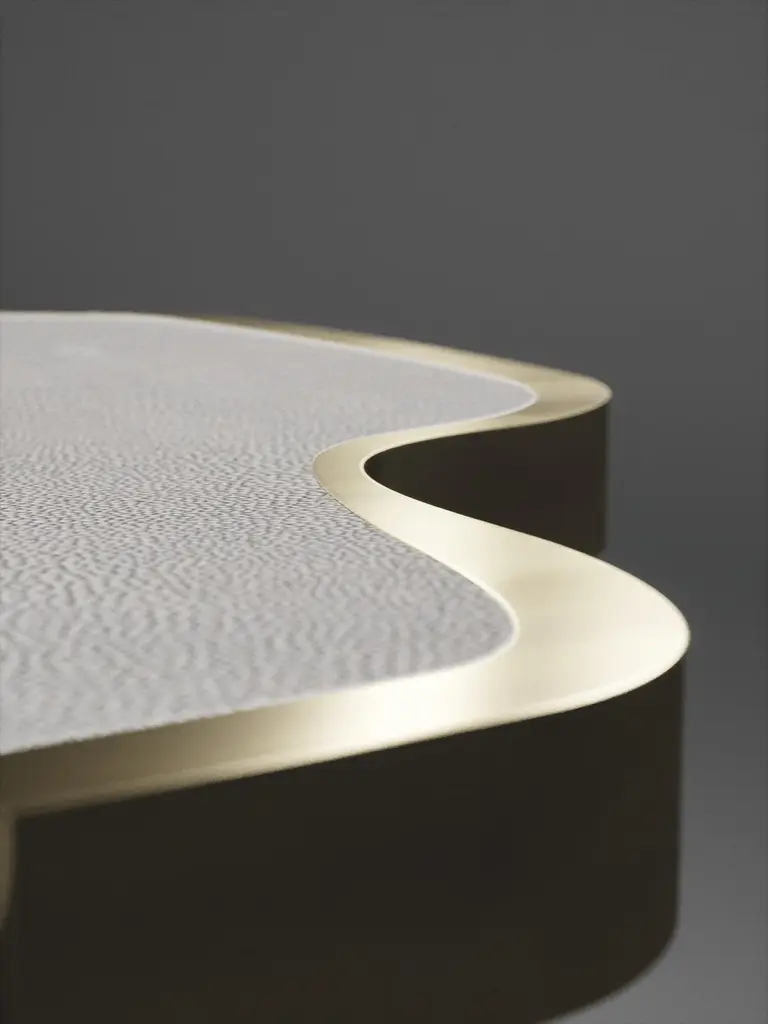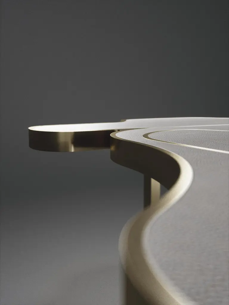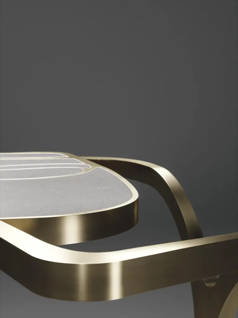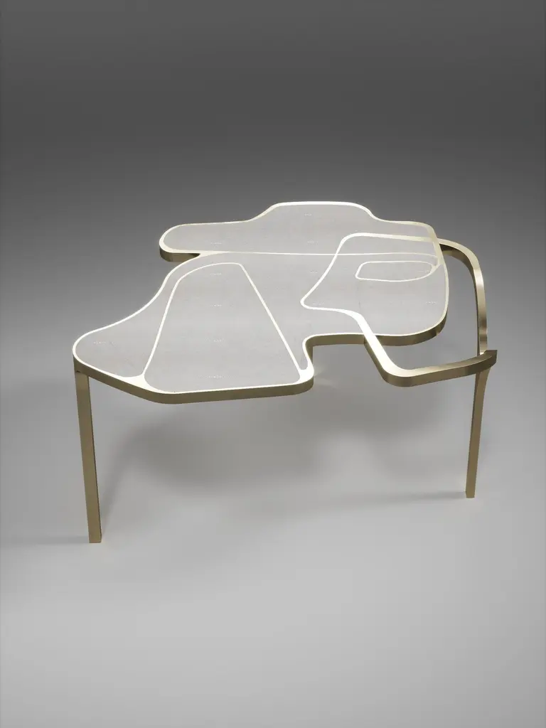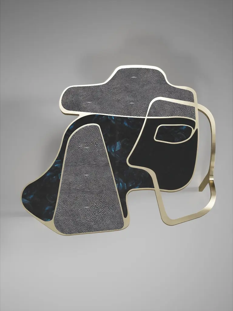 The Paris based label has distinguished themselves since their launch, with their iconic use of shagreen mixed with brass and other exotic materials. All furniture is handcrafted by skilled artisans, ultimately making each piece unique, designed in Paris and produced in the Philippines.The Cocteau coffee table by R&Y Augousti is a truly one of a kind piece. The sculptural and ethereal piece has abstract forms, shapes and figures within it that one could interpret in different ways. The bronze-patina brass inserts in the cream shagreen inlaid surface "melt" organically into the floating frame and base to create this overall beautiful amorphous shape. The finish of the shagreen is authentic as it is hand-dyed by our artisans. The dimensions of this piece are 69.2 x 62.8 x 40 cmAll R&Y Augousti pieces are handmade by artisans, ultimately making each piece unique. Wipe clean with soft dry cloth.Acclaimed design duo Ria & Yiouri Augousti have established themselves since the 1990s as pioneers of modern-vintage style through their luxurious Art Deco inspired collections.The Paris based label has distinguished themselves since their launch, with their iconic use of shagreen mixed with brass and other exotic materials. All furniture is handcrafted by skilled artisans, ultimately making each piece unique. All shagreen-covered items should be kept out of direct sunlight, color variants may occur on the stingray and other exotic finishes, but this showcases the Parisian label's commitment to creating authentic luxurious products using natural components.