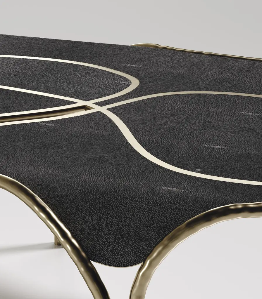 Shagreen Coffee Table With Bronze-Patina Brass Details By R&y Augousti