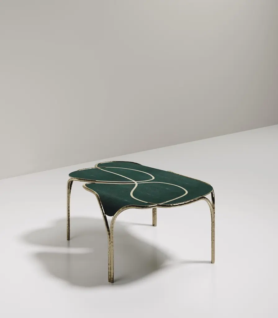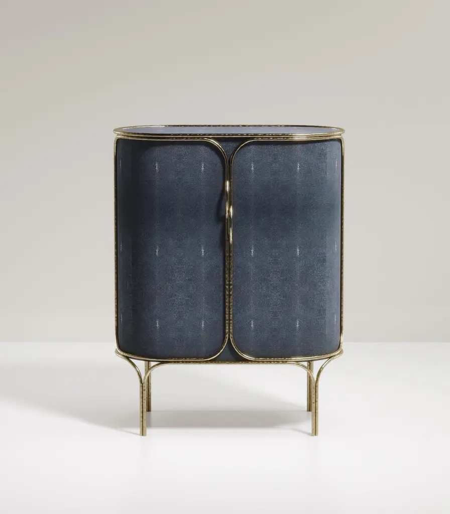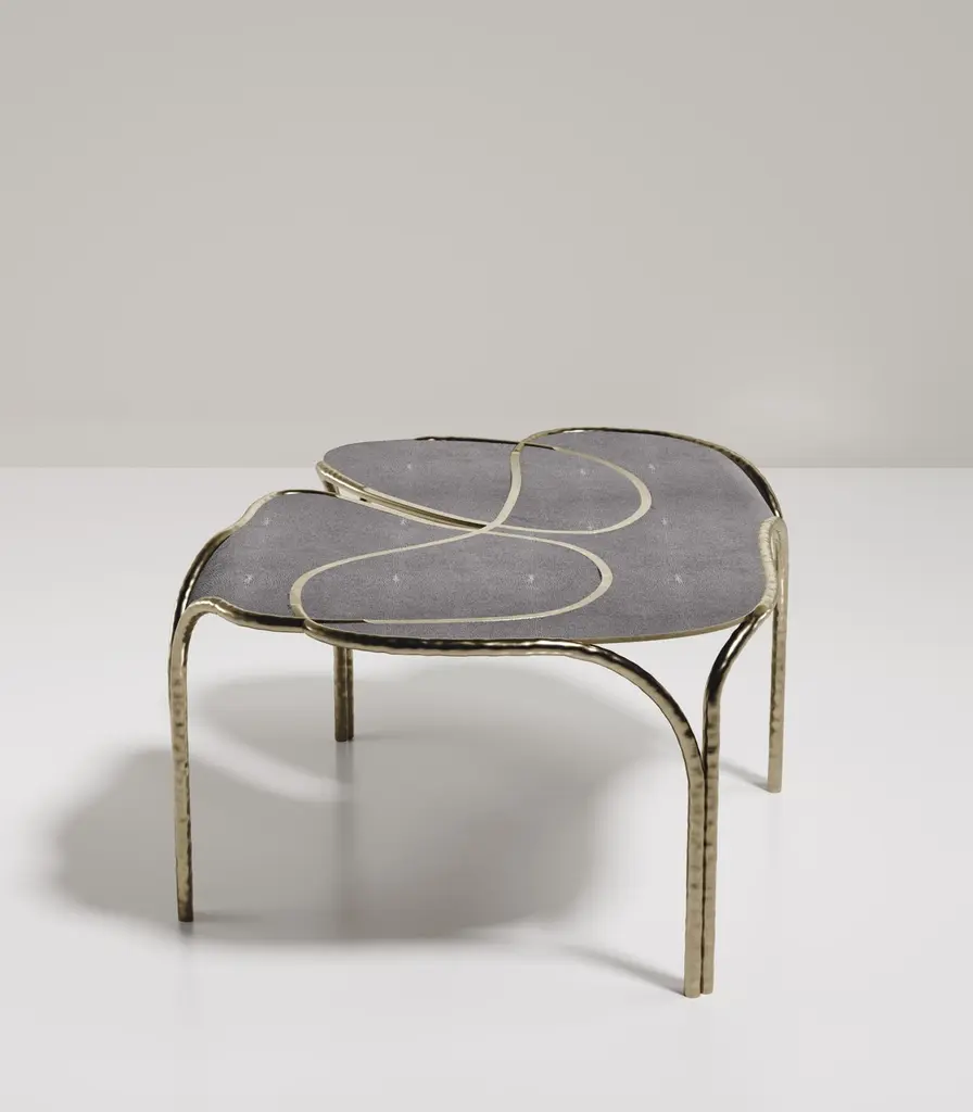 The Paris based label has distinguished themselves since their launch, with their iconic use of shagreen mixed with brass and other exotic materials. All furniture is handcrafted by skilled artisans, ultimately making each piece unique, designed in Paris and produced in the Philippines.The Arianne coffee table by R&Y Augousti is one of a kind statement and whimsical piece. The overall piece is inlaid in coal black shagreen accentuated with intricate bronze-patina brass details that have the signature Augousti "melting" effect. This piece is part of the Arianne Capsule, see images at end of slide of the collection. Available in other finishes, see images at end of slide. Custom sizing / finishing available in requestMeasures: 95 x 68 X 41 cm All R & Y Augousti pieces are handmade by artisans, ultimately making each piece unique. Custom color/sizing available on request. Wipe clean with soft dry cloth.Acclaimed design duo Ria & Yiouri Augousti have established themselves since the 1990s as pioneers of modern-vintage style through their luxurious Art Deco inspired collections.The Paris based label has distinguished themselves since their launch, with their iconic use of shagreen mixed with brass and other exotic materials. All furniture is handcrafted by skilled artisans, ultimately making each piece unique. All shagreen-covered items should be kept out of direct sunlight, color variants may occur on the stingray and other exotic finishes, but this showcases the Parisian label's commitment to creating authentic luxurious products using natural components.