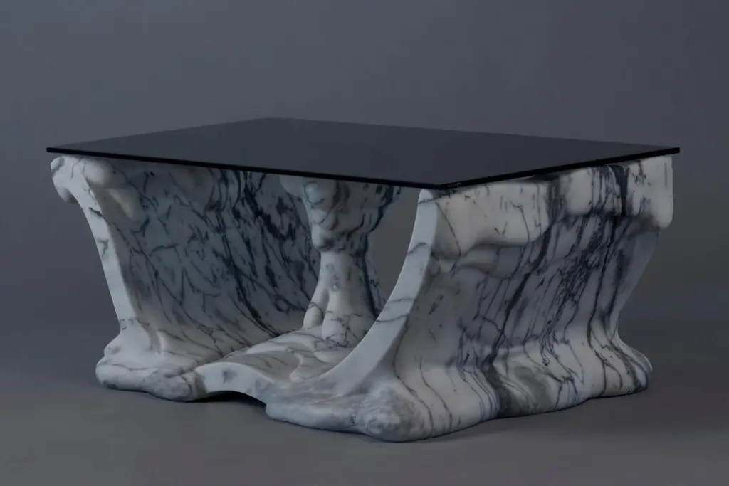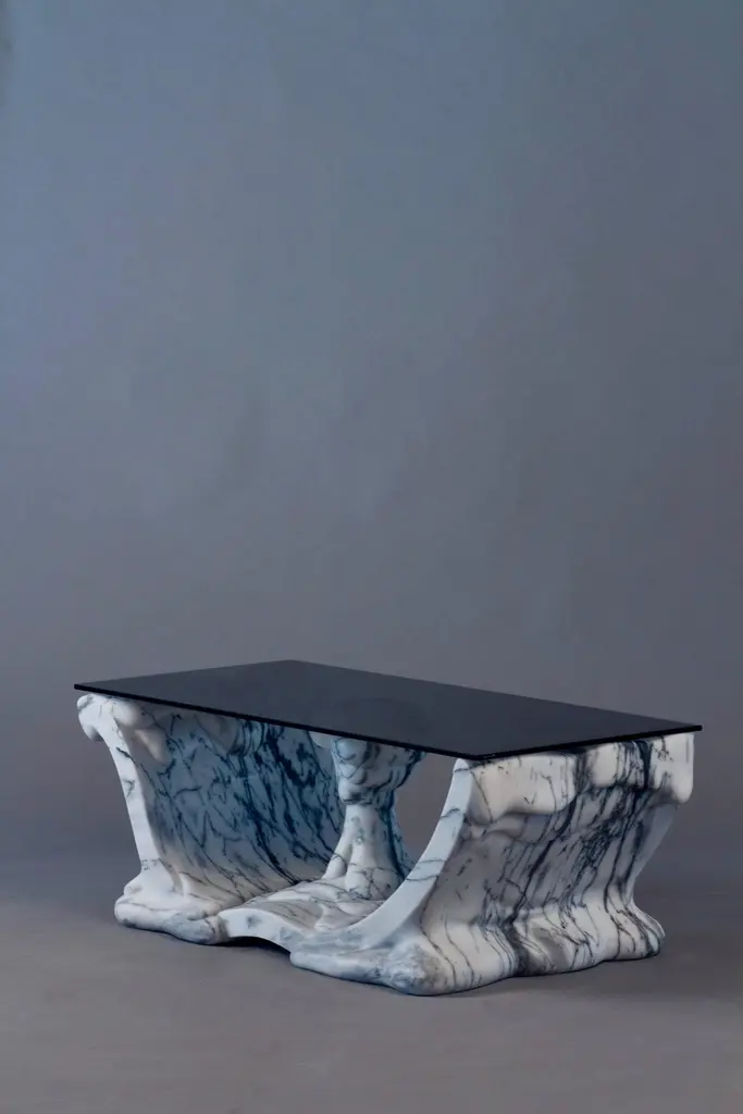 Shape Coffee Table In Marble & Tempered Glass By Manta Handmade Stone Design