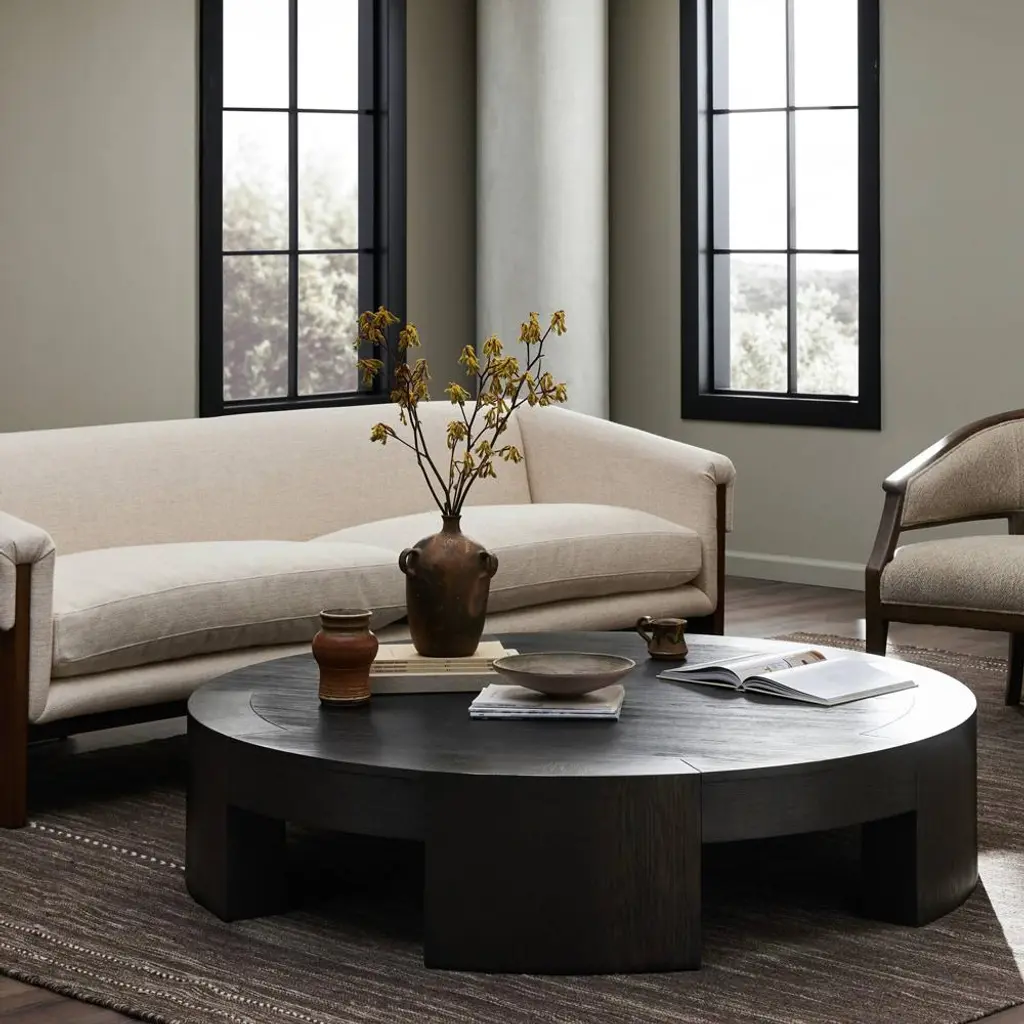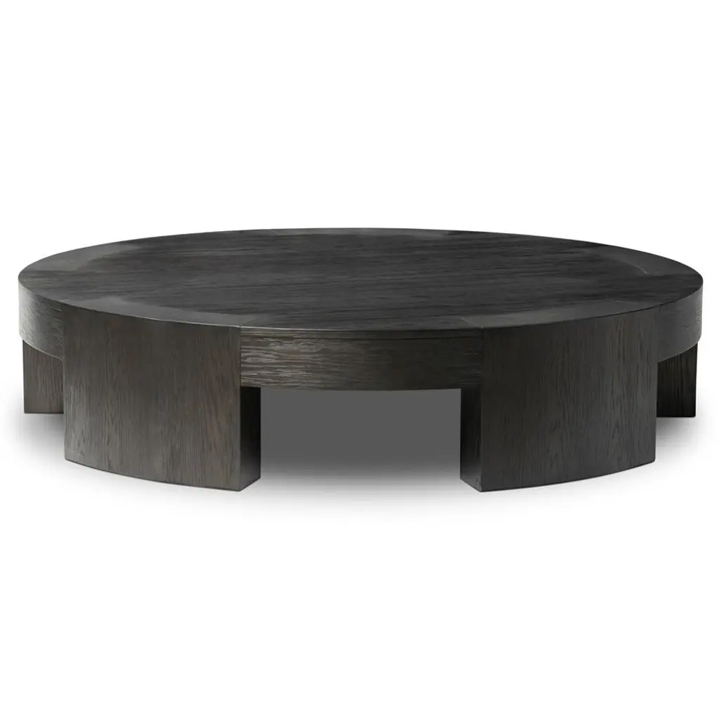 Shelby Rustic Lodge Black Wood Round Coffee Table - 60"