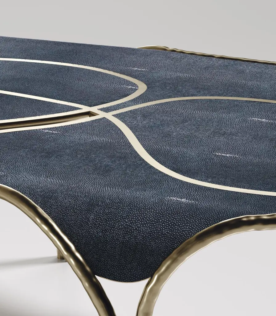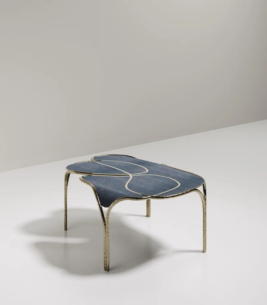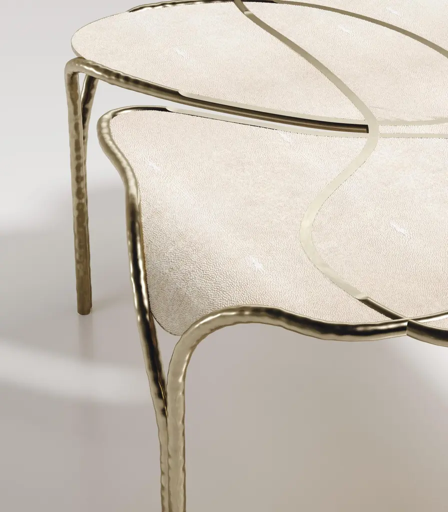 The Paris based label has distinguished themselves since their launch, with their iconic use of shagreen mixed with brass and other exotic materials. All furniture is handcrafted by skilled artisans, ultimately making each piece unique, designed in Paris and produced in the Philippines.The Arianne coffee table by R&Y Augousti is one of a kind statement and whimsical piece. The overall piece is inlaid in black pen shell accentuated with intricate bronze-patina brass details that have the signature Augousti "melting" effect. This piece is part of the Arianne Capsule, see images at end of slide of the collection. Available in other finishes, see images at end of slide. Custom sizing / finishing available in requestMeasures: 95 x 68 X 41 cm All R & Y Augousti pieces are handmade by artisans, ultimately making each piece unique. Custom color/sizing available on request. Wipe clean with soft dry cloth.Acclaimed design duo Ria & Yiouri Augousti have established themselves since the 1990s as pioneers of modern-vintage style through their luxurious Art Deco inspired collections.The Paris based label has distinguished themselves since their launch, with their iconic use of shagreen mixed with brass and other exotic materials. All furniture is handcrafted by skilled artisans, ultimately making each piece unique. All shagreen-covered items should be kept out of direct sunlight, color variants may occur on the stingray and other exotic finishes, but this showcases the Parisian label's commitment to creating authentic luxurious products using natural components.
