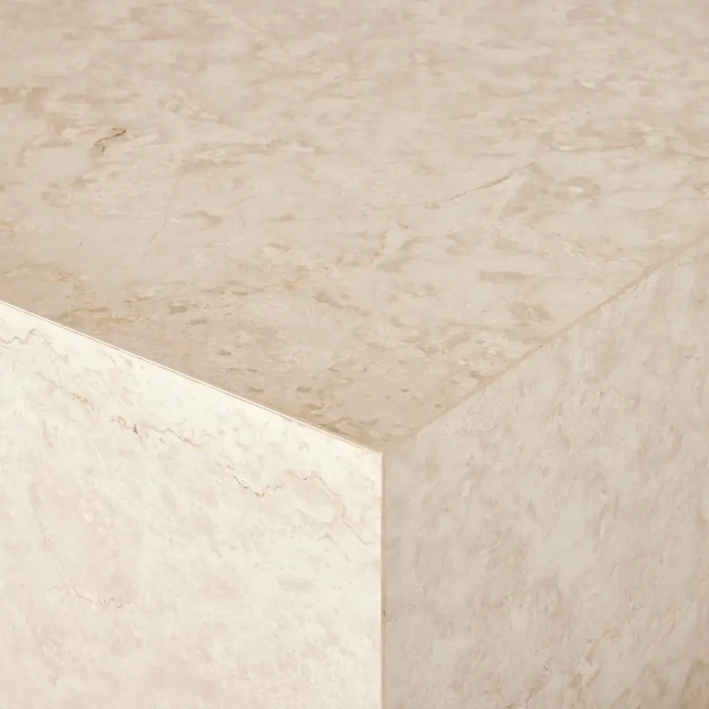 Simple and impactful, this marble outdoor coffee table features a plinth base with a monolithic effect. The marble is sealed to help prevent aging. Cover or store inside during inclement weather and when not in use.