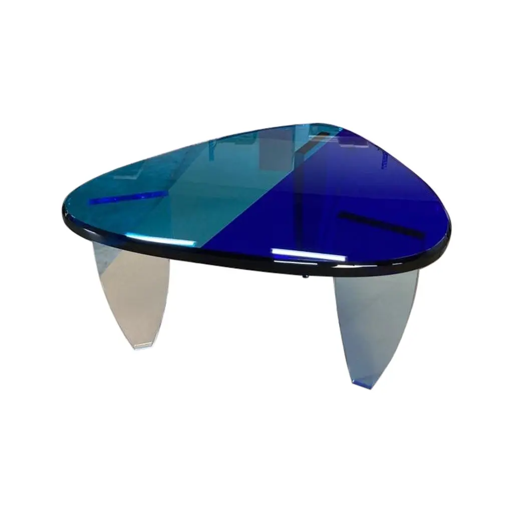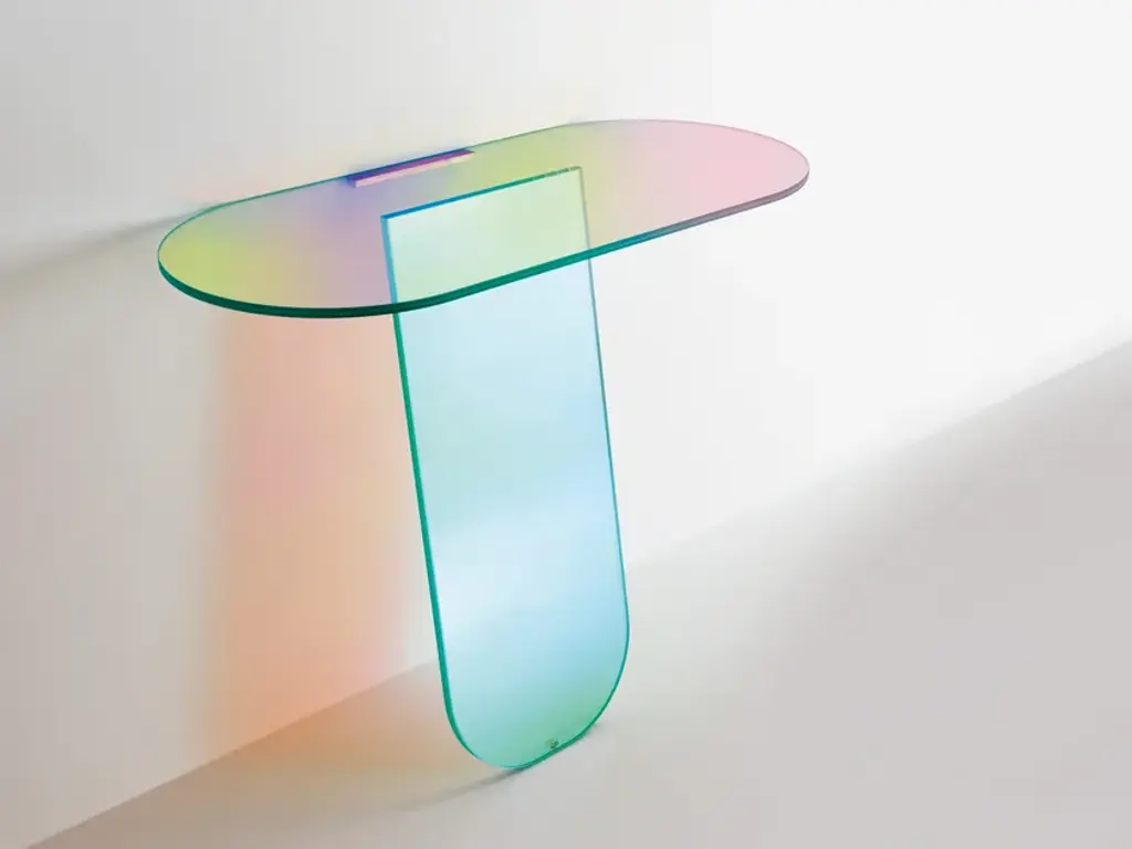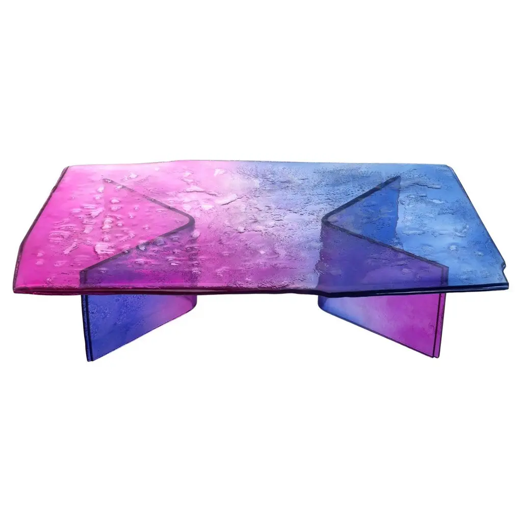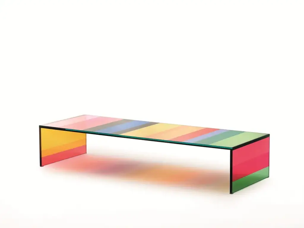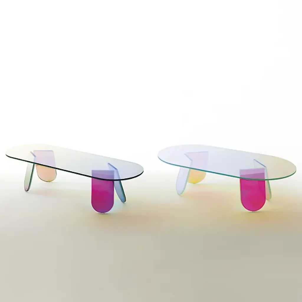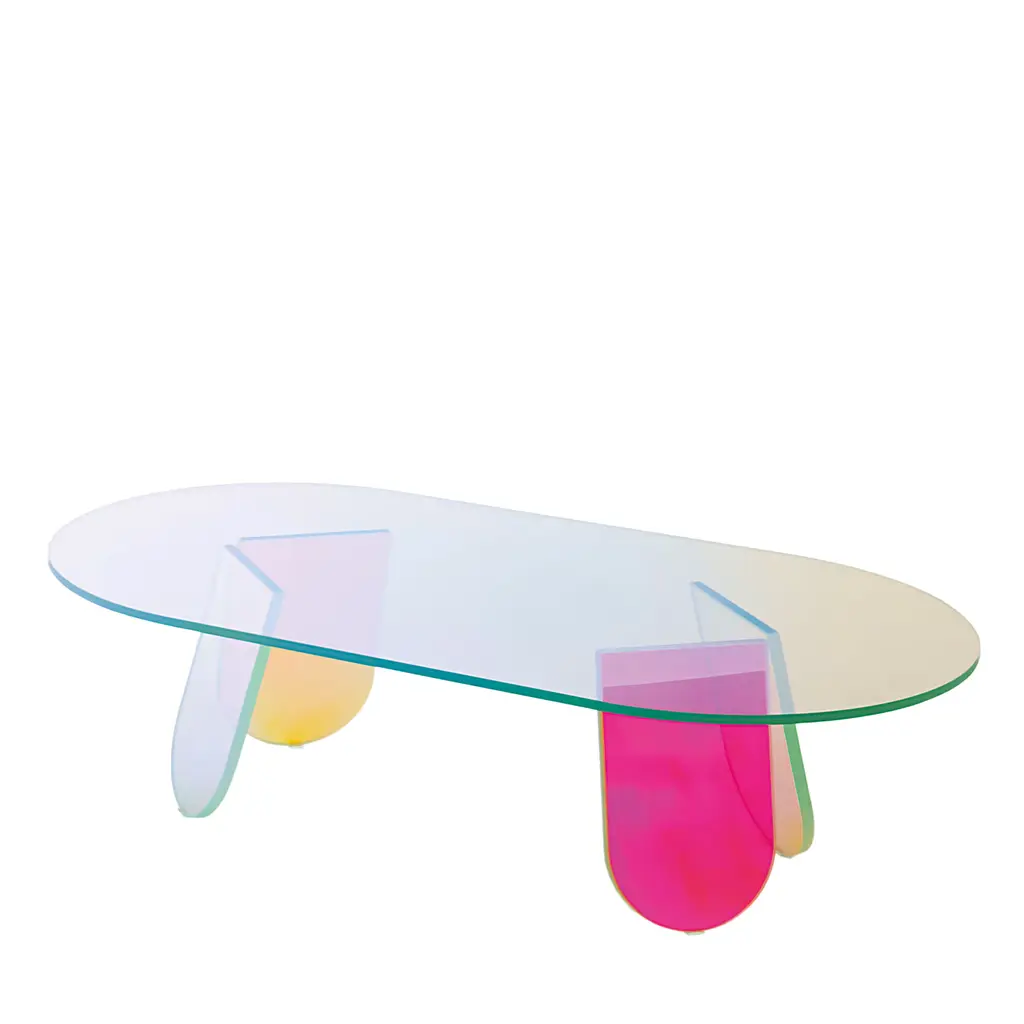 Give an artistic edge to inside spaces with the arresting, rounded appeal of the Shimmer Oval Coffee Table from Glas Italia. A multi-hued marvel from the mind of Patricia Urquiola, it’s made in Italy from multicolored glass, creating a hue-shifting appeal. The glass refracts ambient light, the tempered glass construction staying strong, with rounded legs descending from an oval top. The multicolored legs draw the eye, creating a glorious, artistic edge to its surroundings.