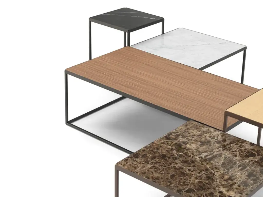 SIDE is a large coffee table with a Canaletto walnut wood top.Side is a steel coffee table, with a rigorous shape and minimal design, it is available in three sizes. Combinable to infinity, with Side it is possible to create different solutions from an catch-all table to a large work surface. Perfect for both contract and domestic environments, its sophisticated frame adds a touch of modernity to the different spaces.