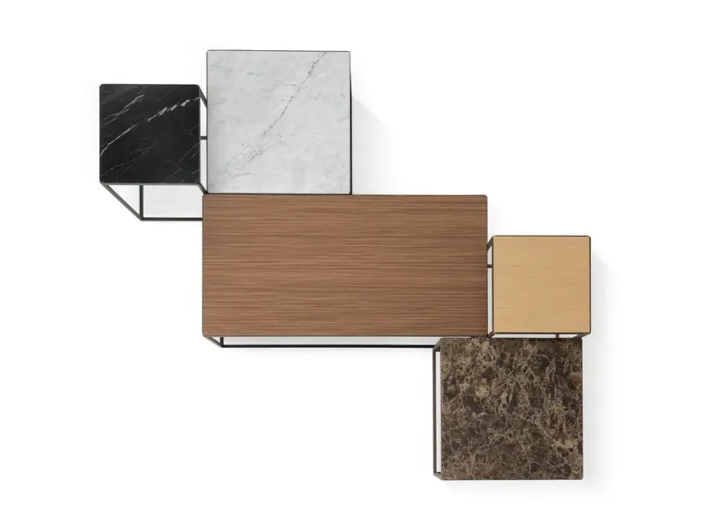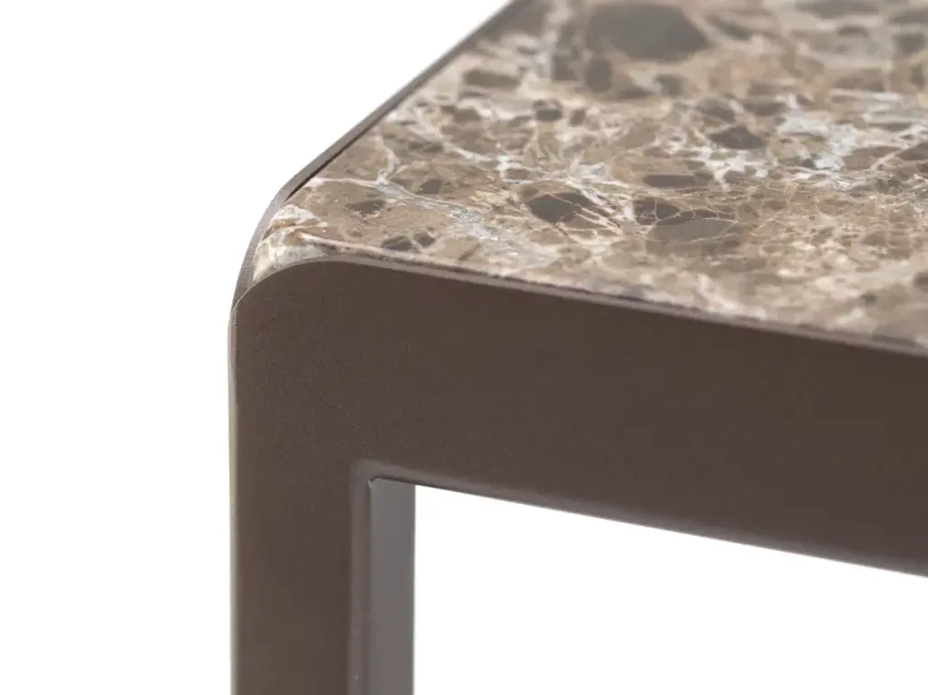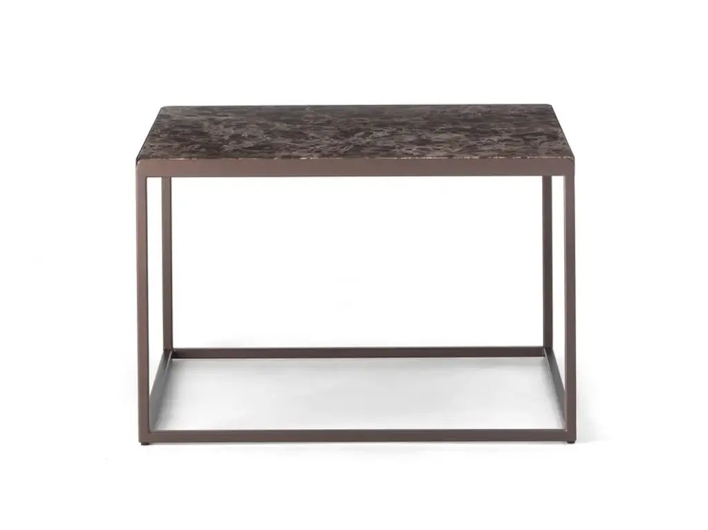 SIDE is a medium table with a marble top.Side is a steel coffee table, with a rigorous shape and minimal design, it is available in three sizes. Combinable to infinity, with Side it is possible to create different solutions from an catch-all table to a large work surface. Perfect for both contract and domestic environments, its sophisticated frame adds a touch of modernity to the different spaces.