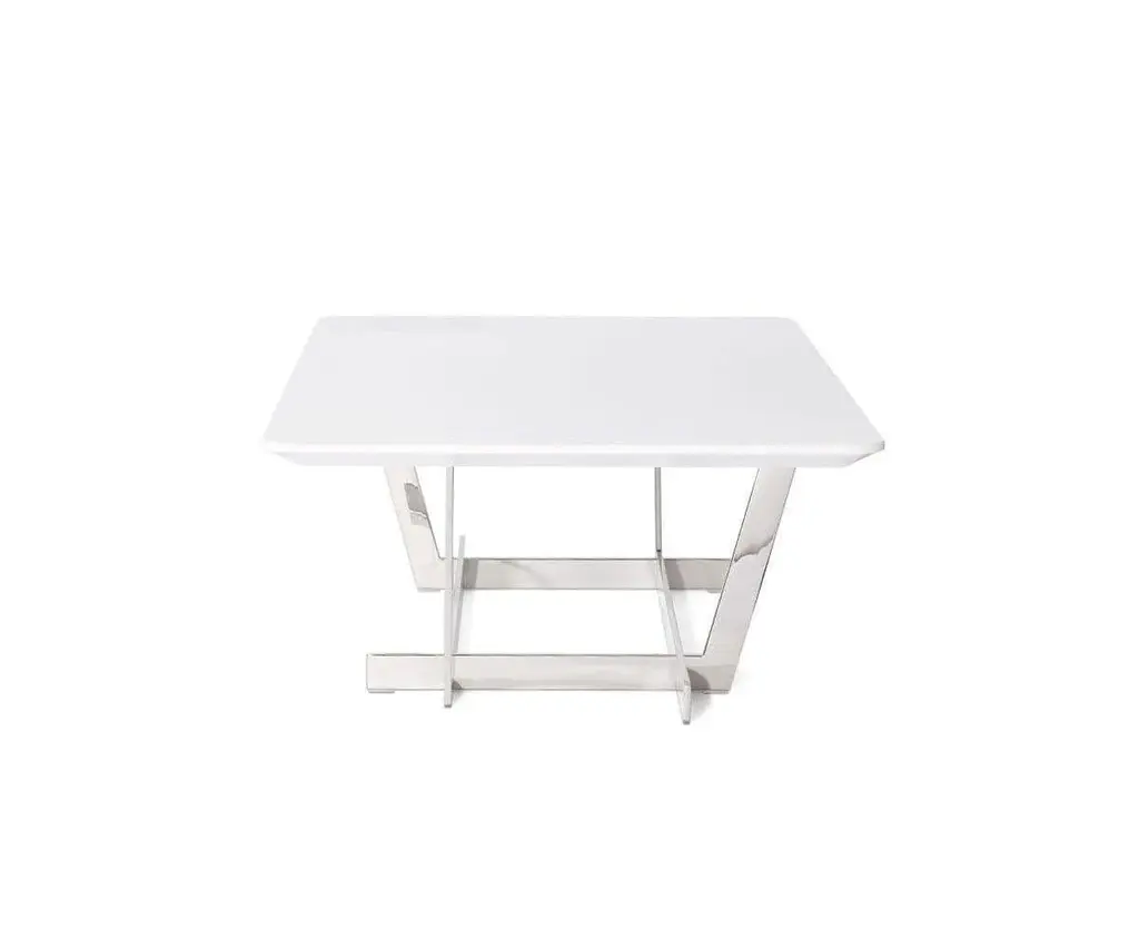 No matter how you look at it, the Sieva Rectangle Coffee Table brings visual intrigue to your living space. A series of attractive angles create a piece that offers functionality with contemporary style. The top is finished in a high gloss with deep beveled edges that perfectly complement the sleek, stainless steel base.