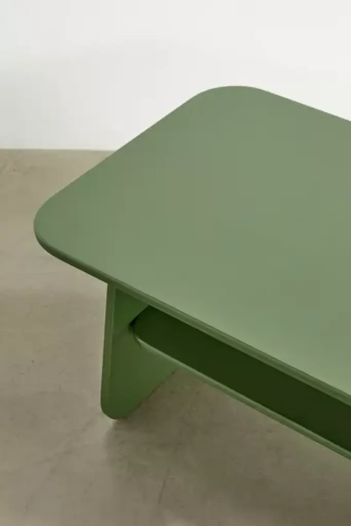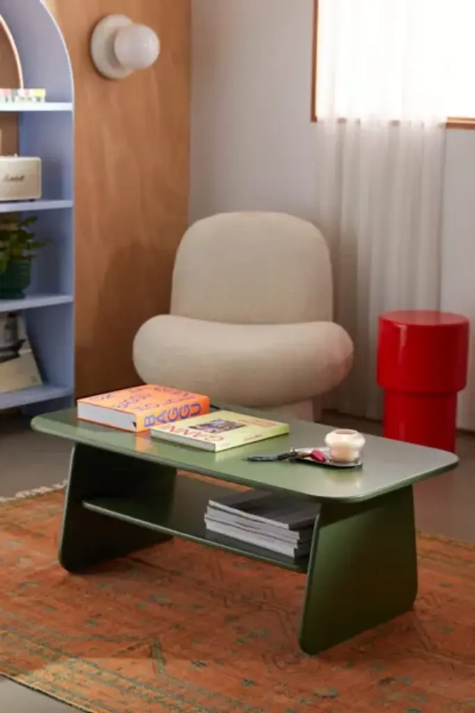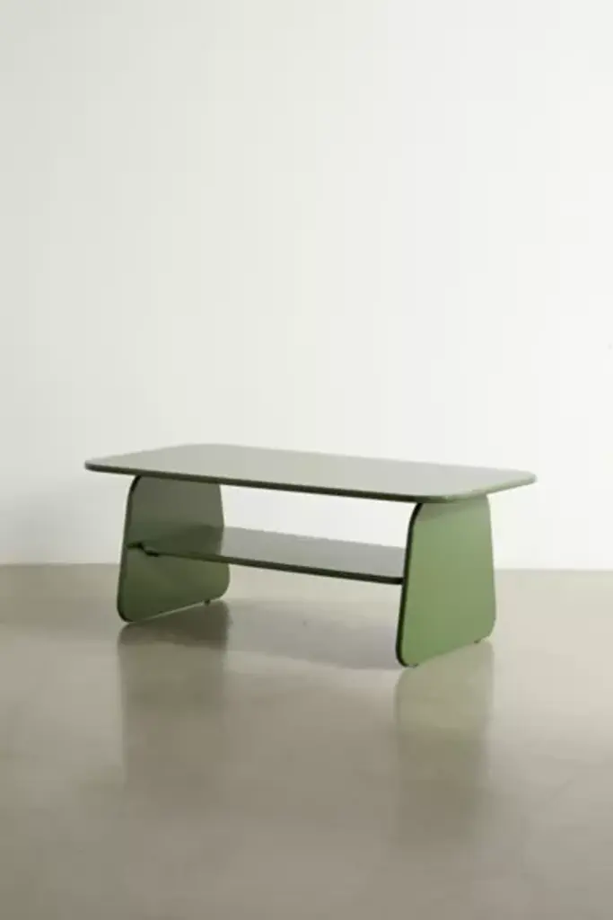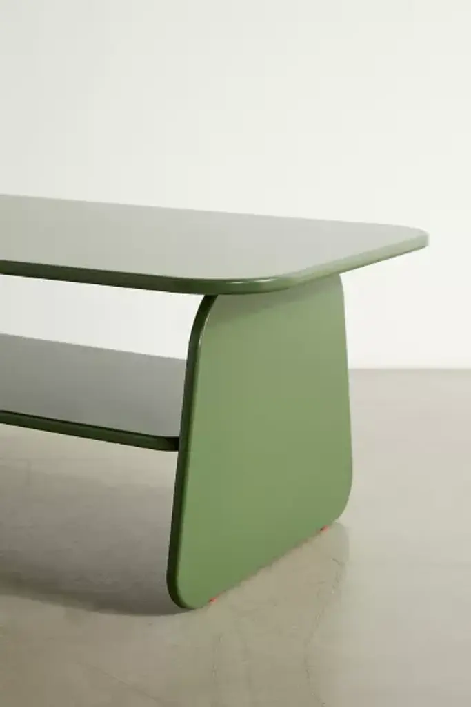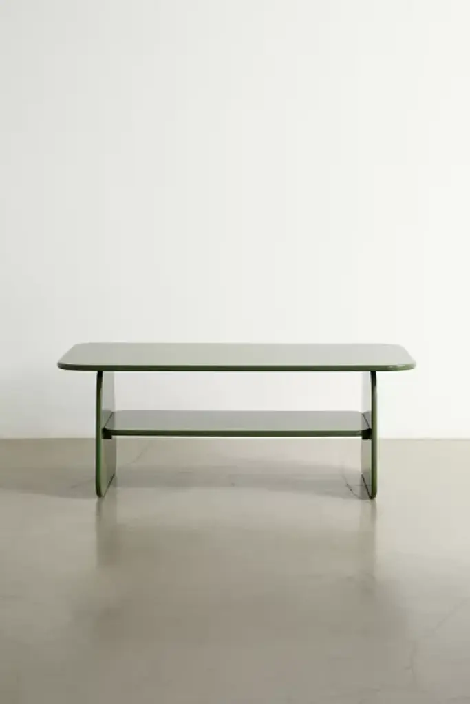 Refresh your living space with this statement coffee table crafted from a blend of engineered and solid wood. Retro-mod design features a rectangular tabletop with rounded corners. Tabletop is set on a duo of curving legs with a shelf at the base to store books and blankets. Available exclusively at Urban Outfitters. **Features** \- Retro-mod coffee table from our Silas furniture collection \- Crafted from engineered and solid woods with statement finishes \- Integrated shelf at the base \- Removable legs \- Assembly required \- UO exclusive **Content + Care** \- Assembly required - instructions and hardware included \- MDF, solid wood \- Wipe clean \- Imported **Size** \- Dimensions: 42"l x 22"w x 16.1"h \- Leg height: 15.4", removable \- Shelf dimensions: 31.5"l x 17"w x 0.7"h \- Weight: 33 lbs \- Shipping package dimensions: 44.9"l x 25.2"w x 5.9"h \- Shipping package weight: 42.12 lbs