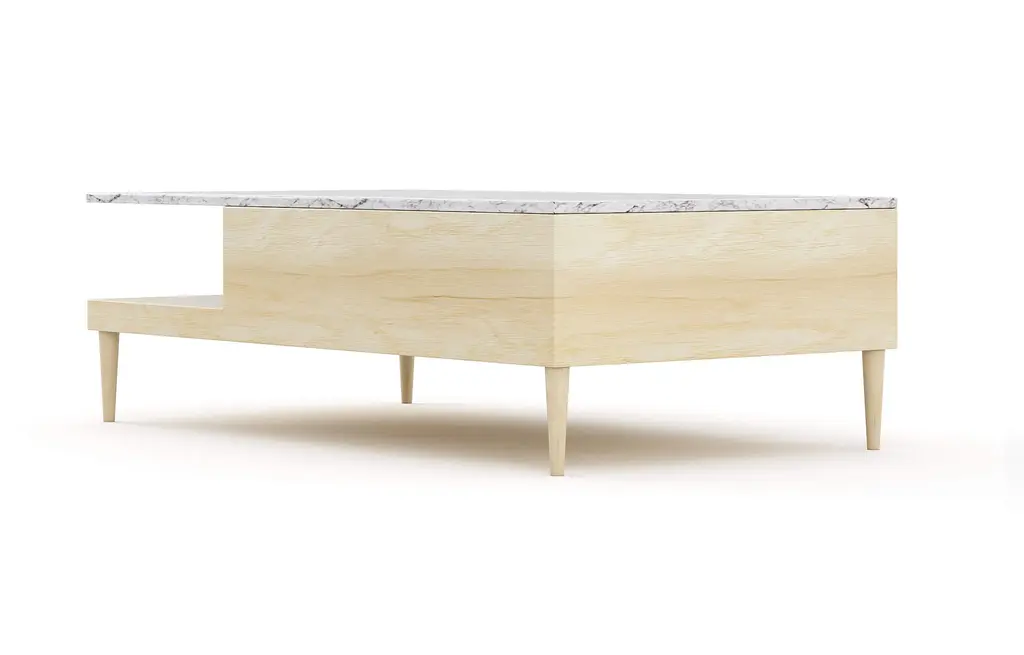 Sino Large Rectangular Coffee Table features a cantilever in stone, creating an overhang over an open shelf. Bring the timeless beauty of marble into your space with both hidden and open storage to display all your living room essentials.Expertly crafted by hand in your choice of domestically sourced, FSC-certified Hard White Maple or American Walnut.