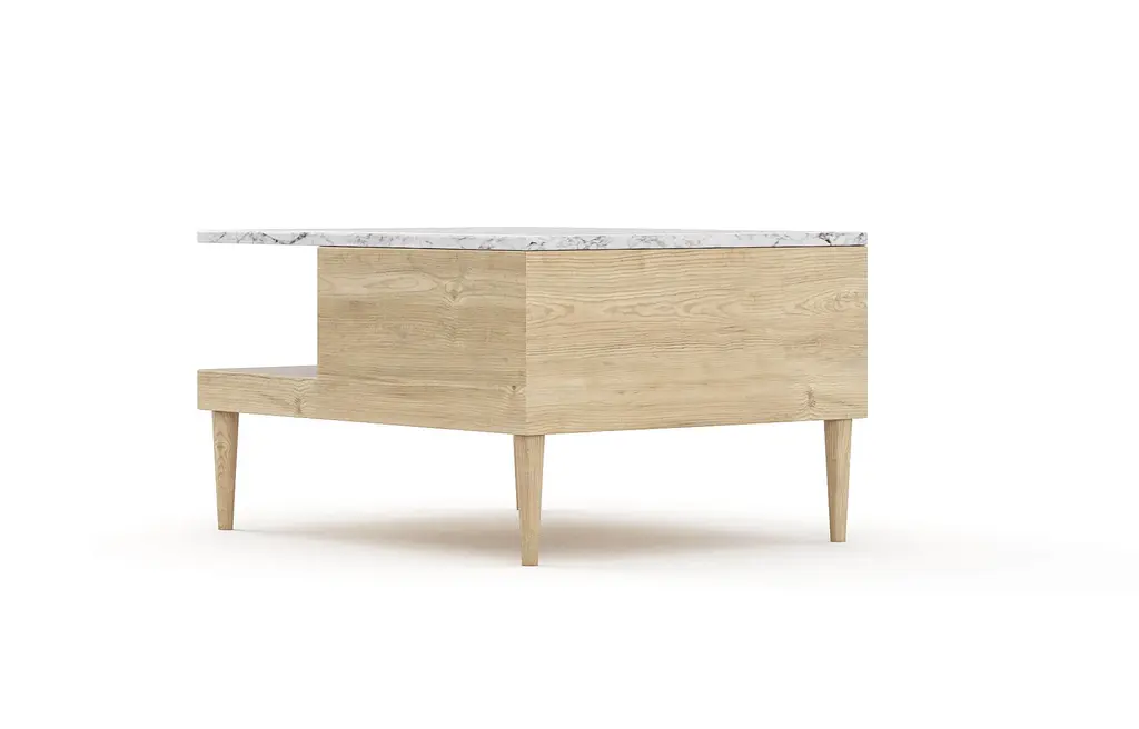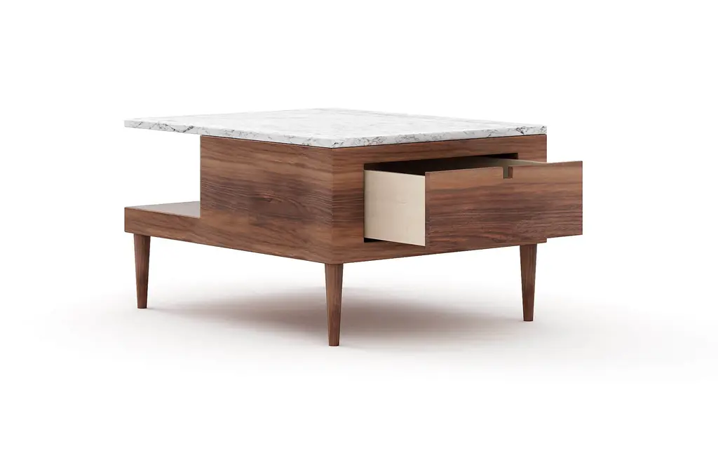 Sino Small Rectangular Coffee Table features a cantilever in stone, creating an overhang over an open shelf. Bring the timeless beauty of marble into your space with both hidden and open storage to display all your living room essentials.Expertly crafted by hand in your choice of domestically sourced, FSC-certified Hard White Maple or American Walnut.