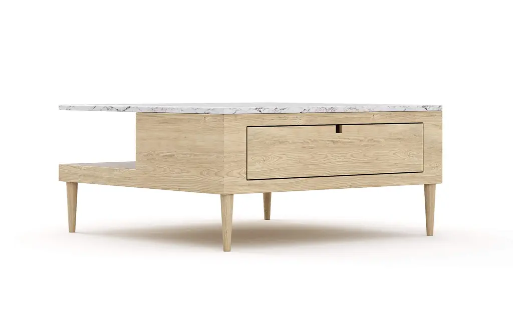 Sino Square Coffee Table features a cantilever in stone, creating an overhang over an open shelf. Bring the timeless beauty of marble into your space with both hidden and open storage to display all your living room essentials.Expertly crafted by hand in your choice of domestically sourced, FSC-certified Hard White Maple or American Walnut.