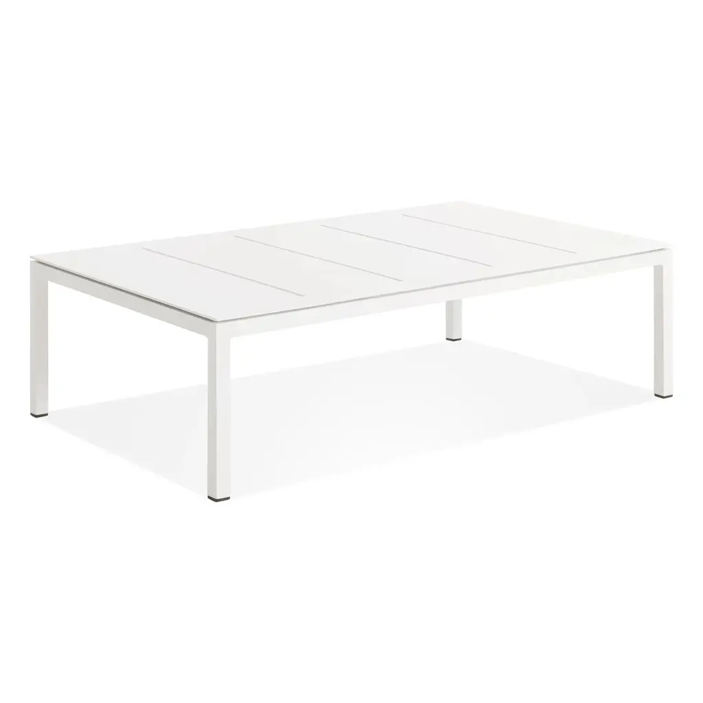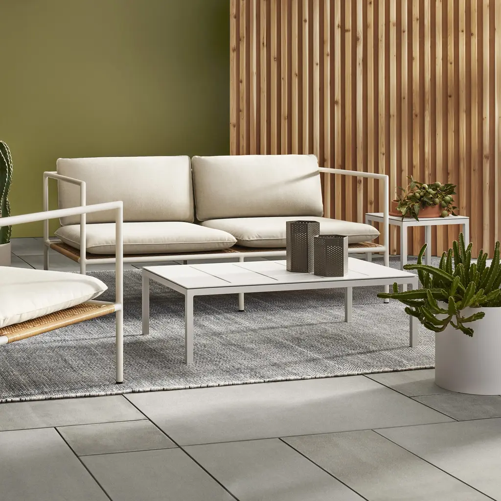 Made with crisp minimal powder-coated aluminum and clean lines, the Skiff Coffee Table from Blu Dot is designed to withstand any weather elements or environmental conditions. The tabletop is made with a smooth, durable, and low-maintenance HPL material that makes it easy to clean and maintain its sleek look over time. Its slim frame and lightweight design make it easy to move and reposition, while its finish options make it versatile enough to complement any patio, porch, or deck décor. Highlights