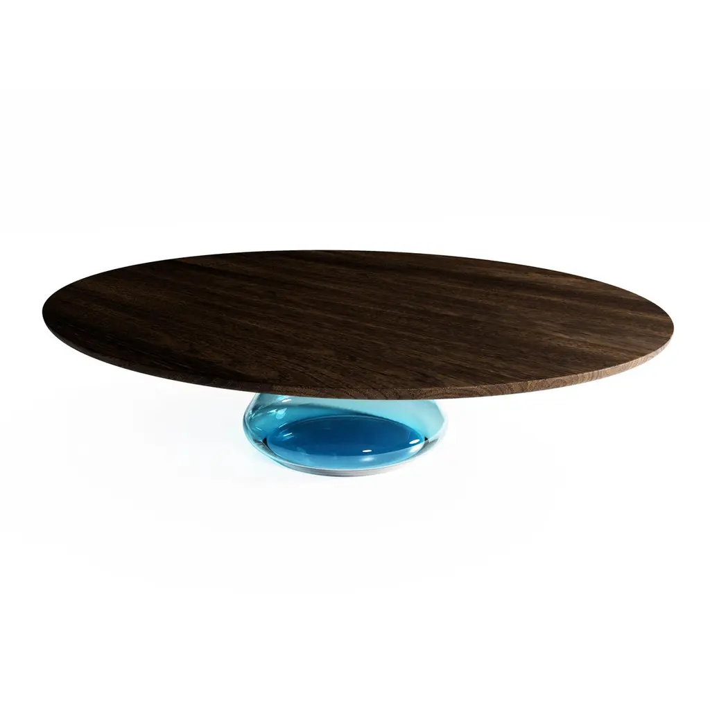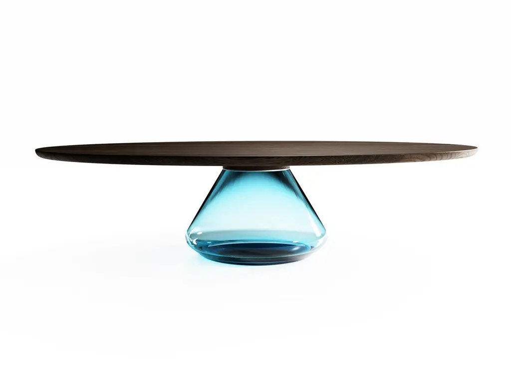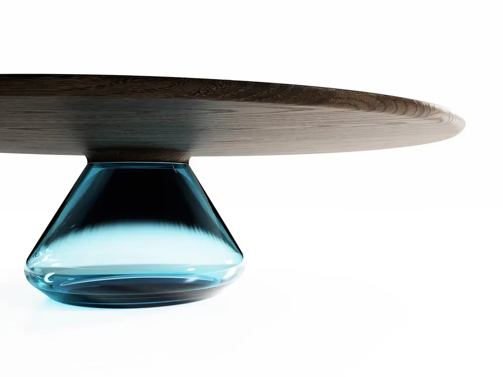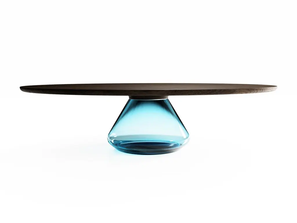 The sky Eclipse I, limited edition coffee table by Grzegorz MajkaLimited Edition of 8Dimensions: 54 x 48 x 14 inMaterials: Glass, oakThe total eclipse of every interior? With this amazing table everything is possible as with its Minimalist style it will definitely eclipse all things around, spreading its hidden beauty. Focusing on arresting things not seen from the very first perspective inspired to create the piece of work called The Eclipse. When finally noticed attracting all the recipients by its unique form.New application and new ideas? Why not to use the glass but the other way round as it is typically done with Classic tables, glass top and the glass base?As a result of this idea we can admire the solid and beautiful tempered smoked glass top sustained by glamorous handmade glass base. When joined together the exclusive and elegant coffee table came to light.Grzegorz Majka is a self-taught Polish artist who explores the concepts of modularity, sculptural form, and artisanal processes in the design of furniture and lighting. His work seamlessly blends craft and contemporary design, incorporating high-quality noble materials like natural stone, wood, metals, and hand-blown glass. Guided by a deep respect for the inherent character of materials, Grzegorz highlights natural irregularities, textures, and patterns - veins in stone, the living patina of untreated metals, the organic feel of brushed surfaces. These elements are not hidden but embraced, inviting collectors on a sensory journey through touch and time.His studio practice focuses on handcrafted limited-edition furniture that is not only functional, but also living, authentic, collectible art.