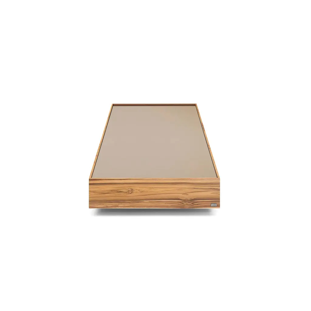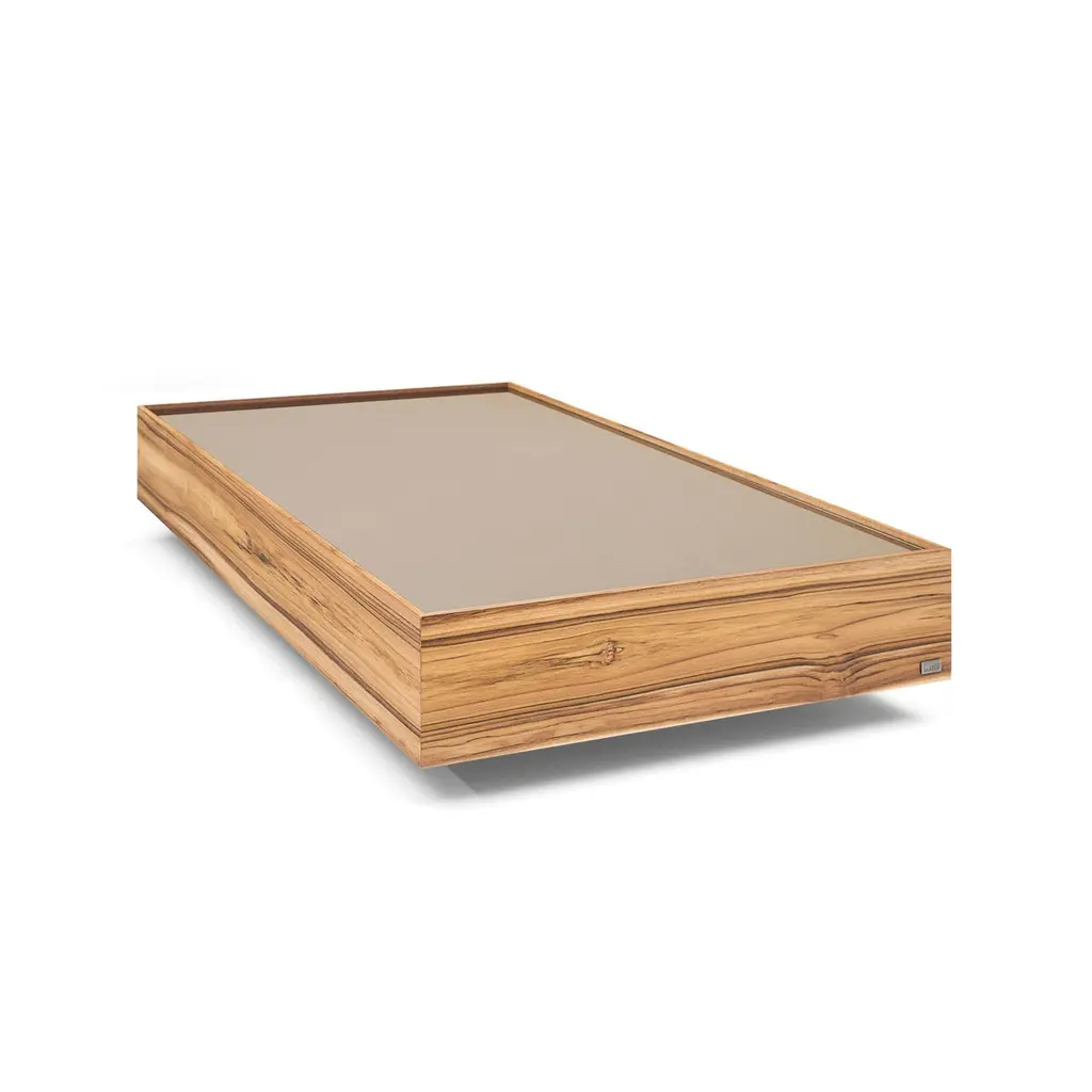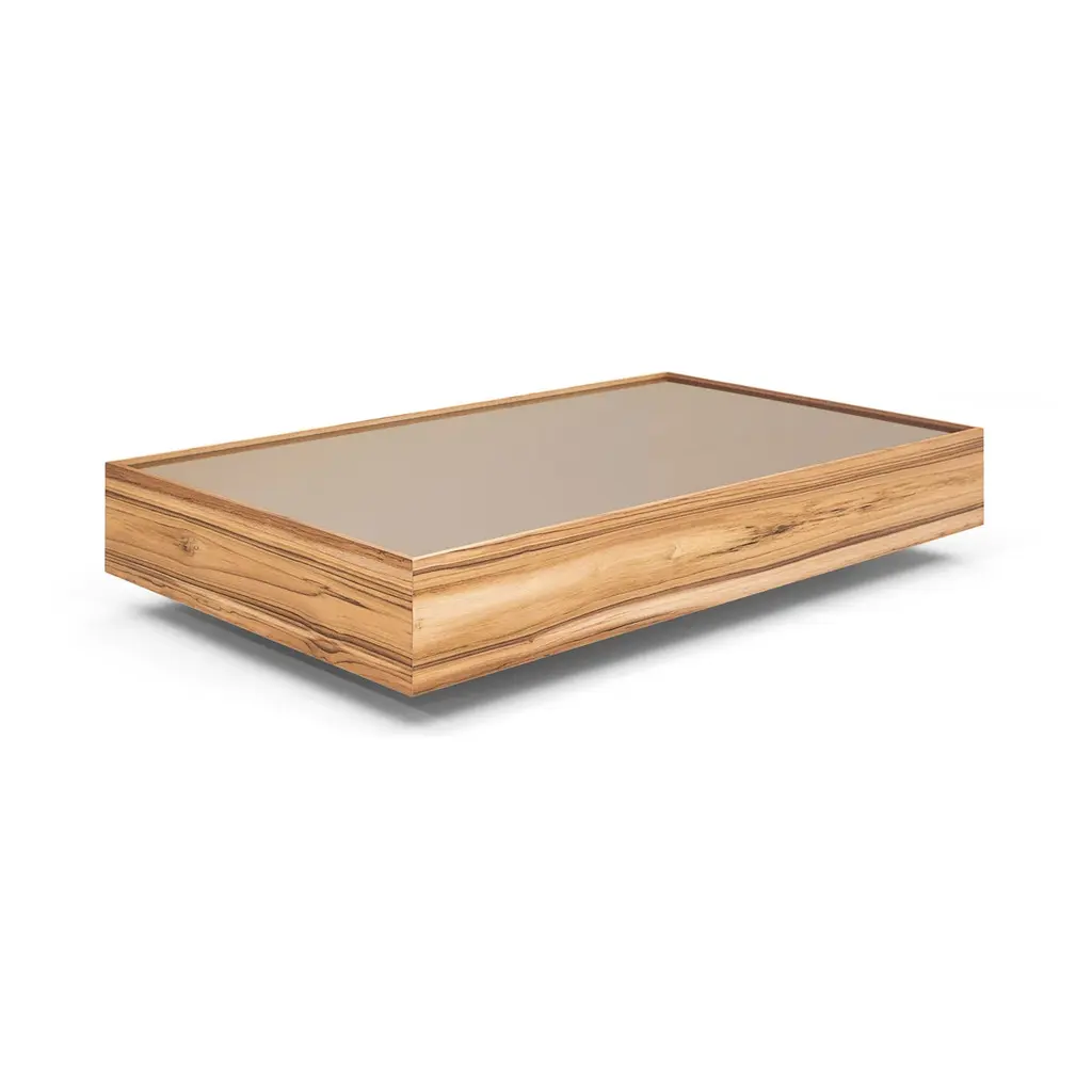 Arc rectangular coffee table by Uultis in teak wood with 47" W bronze glass top. Introducing the Arc coffee table by Uultis, a refined fusion of teak wood and sophisticated high-styled bronze glass, bringing a modern yet timeless touch to any living space. Designed by the talented Brazilian team at Uultis, this rectangular coffee table is an embodiment of simplicity and functionality, seamlessly blending clean lines with a contemporary aesthetic. The low-profile silhouette enhances its sleek appearance, making it a versatile piece that effortlessly complements various decor styles, from minimalist and modern to traditional and coastal.The Arc coffee table’s solid teak wood frame is meticulously crafted, highlighting the natural variations in the wood grain, ensuring each piece is unique. Paired with the elegant bronze glass top, the table captures a perfect balance between organic warmth and contemporary design, creating a light and airy feel in your living room. The high-quality materials and sustainable practices used in its construction underscore Uultis' dedication to eco-conscious living, providing a beautiful piece that is both environmentally friendly and durable.This versatile coffee table is perfect for enhancing a modern setting or adding sophistication to a classic room. Place it in front of a sofa to serve as a stylish platform for drinks, books, or decorative items. Its minimalist design ensures it integrates harmoniously with existing decor, while the unique combination of teak and glass adds a distinct touch of elegance. Whether you're hosting guests or enjoying a quiet evening, the Arc coffee table offers both practicality and aesthetic appeal.Crafted with meticulous attention to detail, the Arc coffee table is ready to transform your home with its understated charm and functional beauty. Choose this piece to elevate your living space, where timeless design meets sustainable craftsmanship.