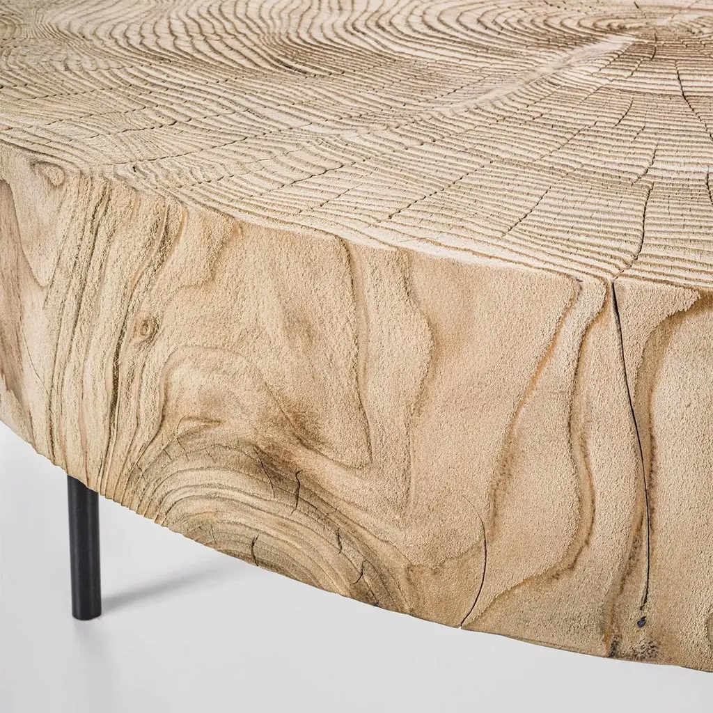 Coffee Table Slice Cedar Round all in solid natural aromaticcedar wood. Made in one block of cedar wood. Treated with natural pine extracts wax. With steel base in lacquered finish.Each piece is uniqueSolid cedar wood include movement, small or big cracks and changes in wood conditions, this is the essential characteristic of natural solid cedar wood due to natural settlement and different environmental conditions.