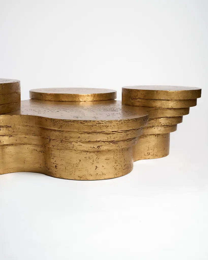 Slice me up sculptural coffee table by Pietro Franceschini.Manufacturer: We Do.Dimensions: W 161cm x L 117cm x H 36 cmMaterials: Aluminium, Golden Leaf.Pietro Franceschini is an architect and designer based in New York and Florence. He was educated in Italy, Portugal and United States. After receiving his B.Arch cum laude from Università degli Studi di Firenze and his M.S.Arch with 1st class honour from Pratt Institute, he collaborated among others with Leeser Architecture in Brooklyn, Claudio Nardi in Florence, Laisné Roussel in Paris and Carlo Ratti Associati in New York. His latest project - PFStudio - was born as an interior and furniture design practice.