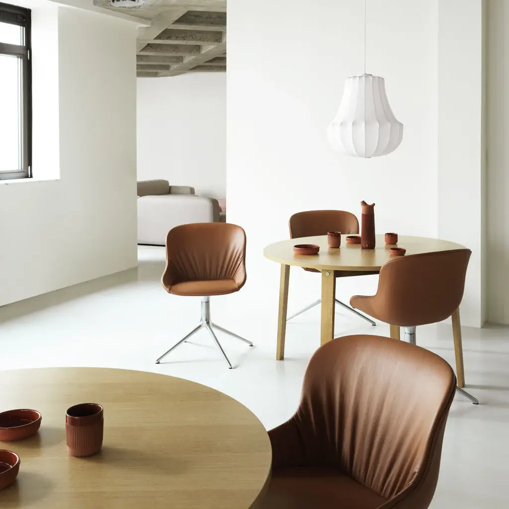 The beautiful oak Slice tables are joined by Slice vol. 2 that consists of a bench, a bar table, a coffee table and a round table in two sizes. The designs open up for a wealth of interior design opportunities in both private homes as well as offices and restaurants. In the design of the Slice collection, attention has been heaped on the details and proportions, giving Slice a solid expression and a visual lightness. Where the original Slice table has openings between the boards of the table top, Slice vol. 2 has an entirely smooth top, which gives a calm appearance and a practical, even surface. With its hardwearing materials and balanced mode of expression, the Slice collection offers timeless furniture design that shines with warmth and exclusivity.