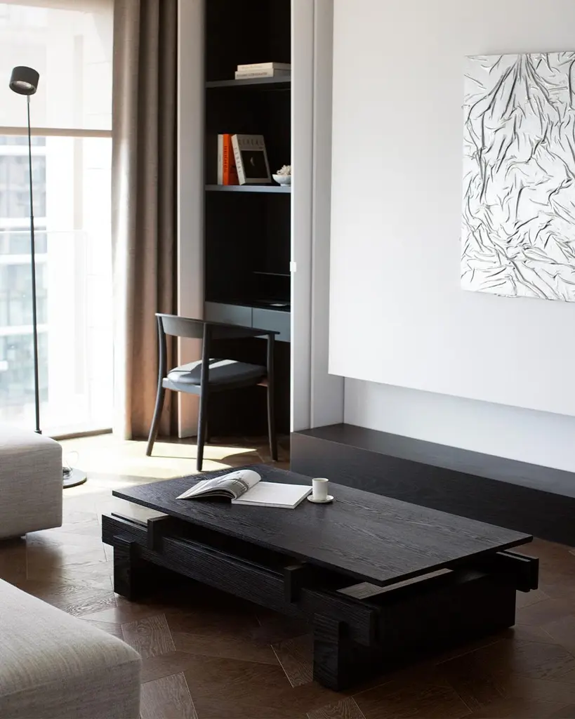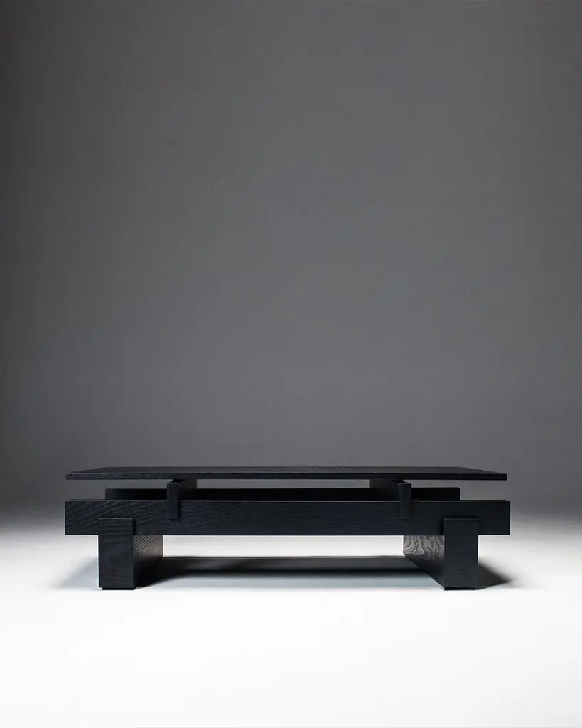 Slit Coffee Table, Wood Top With Dynamic Look, Black Oak