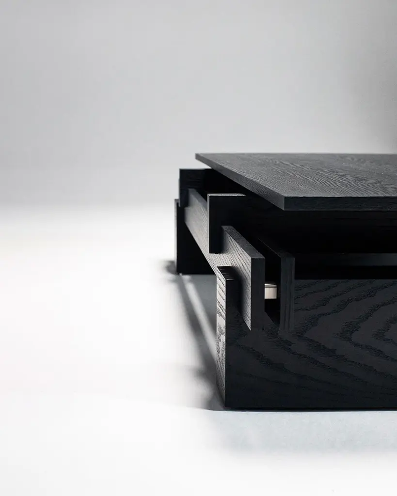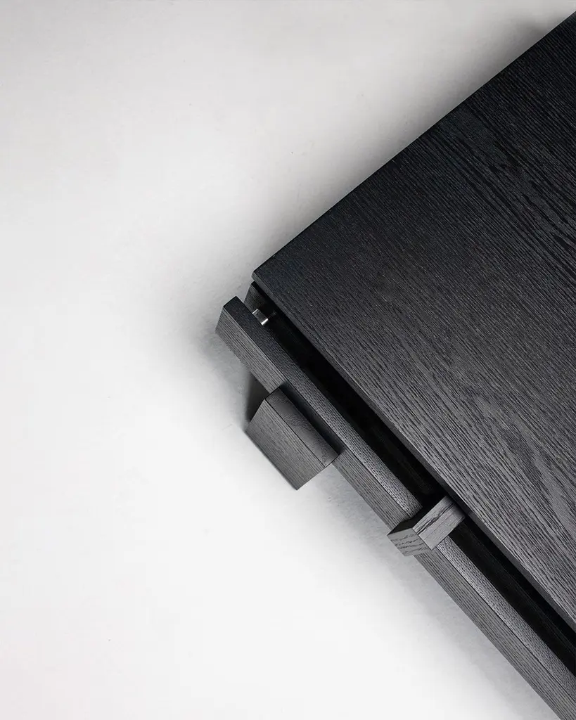 Step into Slit's world of creative interplay of textures and axes. It exalts the 'Off_Grid' concept by disrupting wooden slats' axes on three different vertical levels. The design process of Slit begins with two lines, represented by mid-level wooden slats, which are then slitted in the center into two pieces each. This pieces are secured by metal cubes, the anchor points. The upper and lower level slats move in the opposite direction, an exciting motion revolving around the mid-level slats. Capture the essence of rebellious in a dynamic and balanced form.