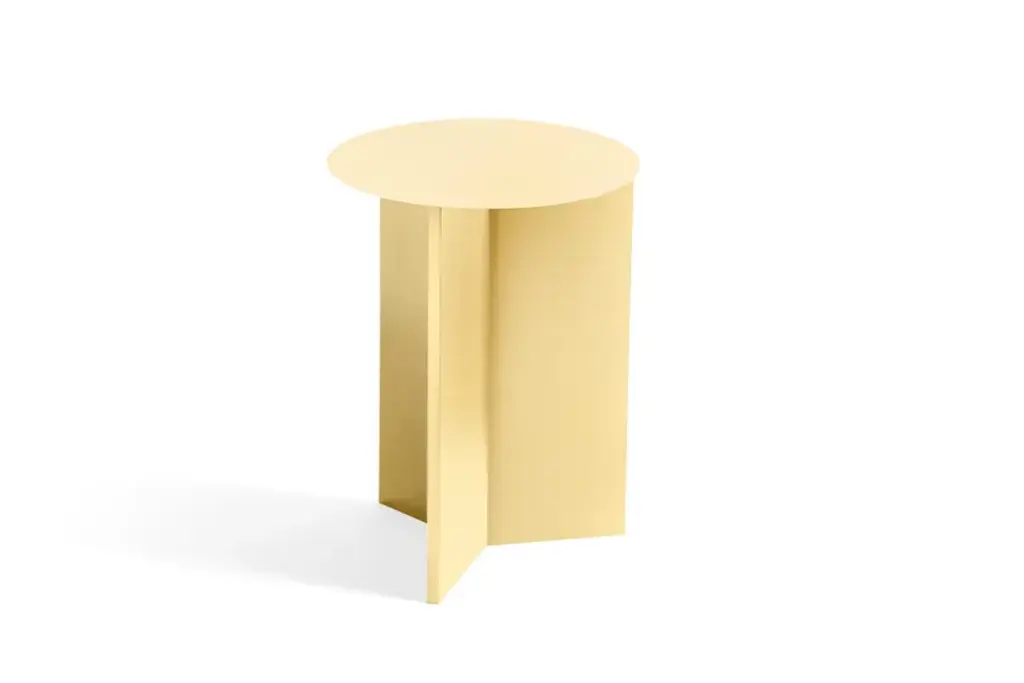 HAY’s Slit Table is a geometric steel side table inspired by paper origami techniques. The slim frame appears folded beneath the tabletop, creating a simple yet sculptural form that is reminiscent of traditional Japanese paper art. The Slit Table is available in a selection of different shapes and sizes and is offered in a variety of contemporary colours and finishes. Compact and versatile, it can be used on its own or arranged in clusters in diverse private or public settings.Material: Powder coated steel. Mirror and Brass are crafted in high-gloss polished stainless steel. Brass is plated with a brass colour.