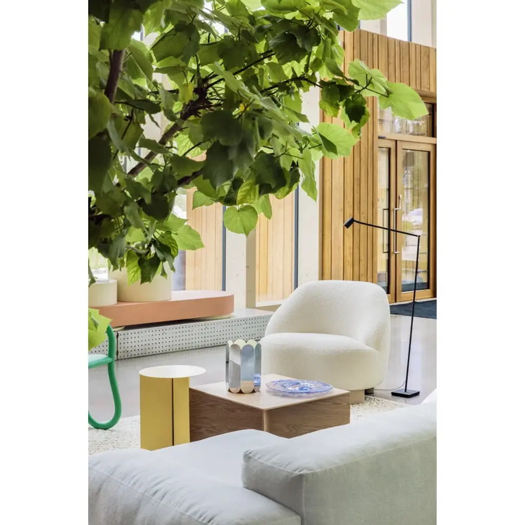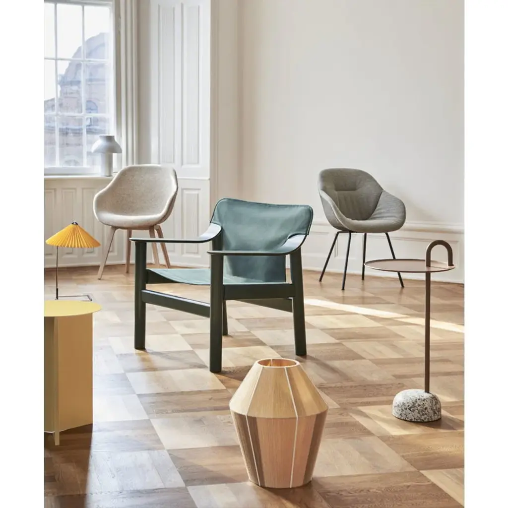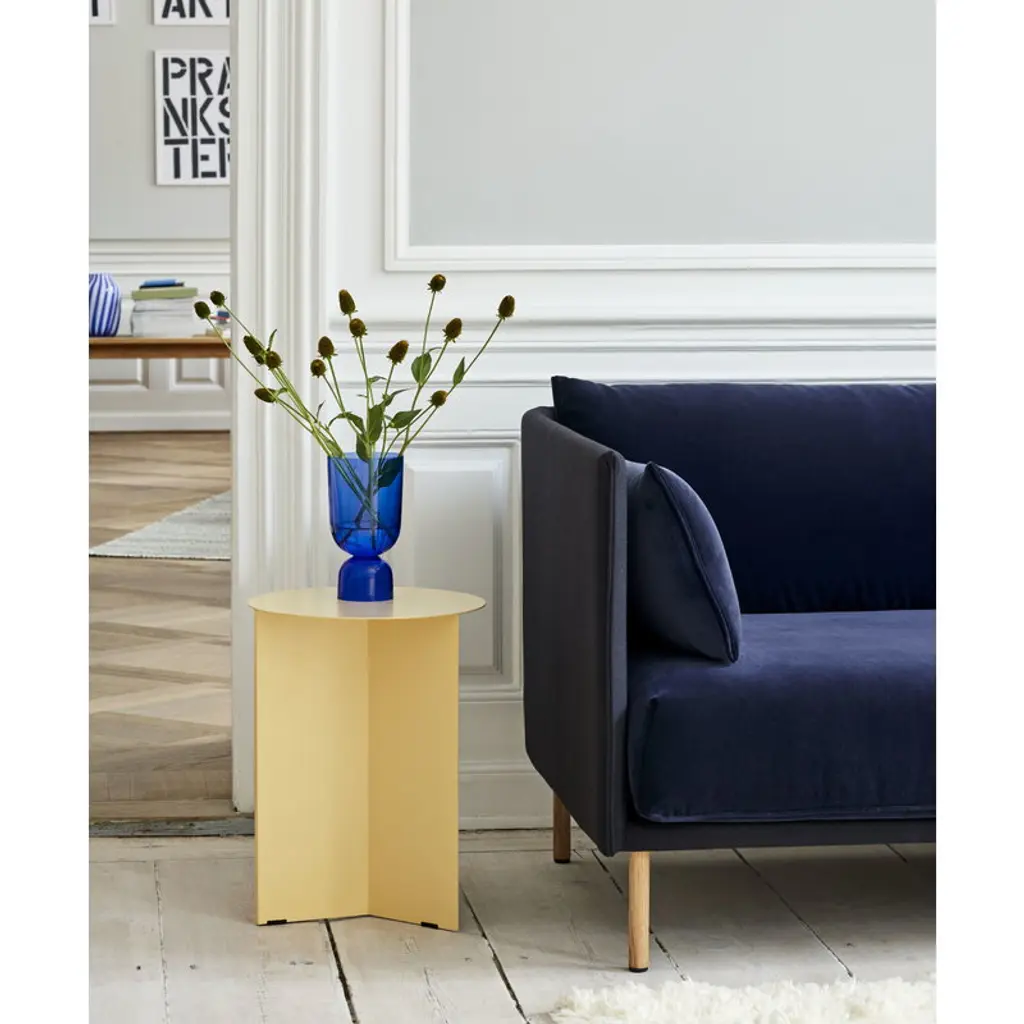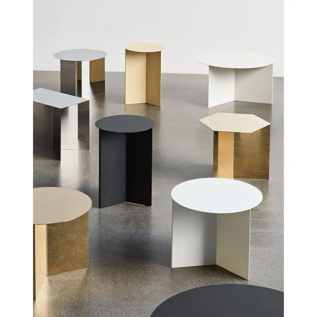 HAY's Slit table is a simple metallic coffee table with a delicate design inspired by Japanese origami art. The round tabletop is supported by a geometric frame that resembles a folded paper origami. Use the Slit tables alone, in pairs or as beautiful clusters formed by different colors and shapes.