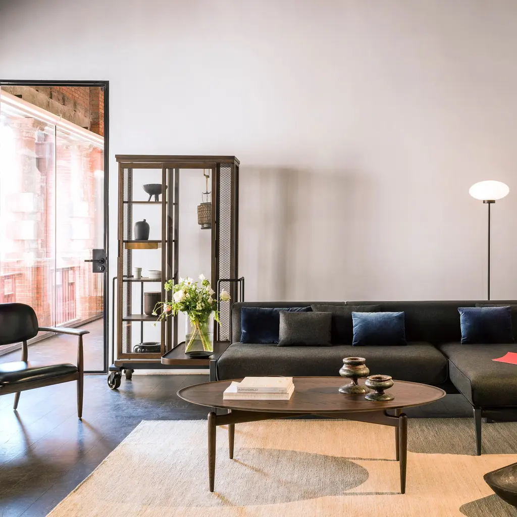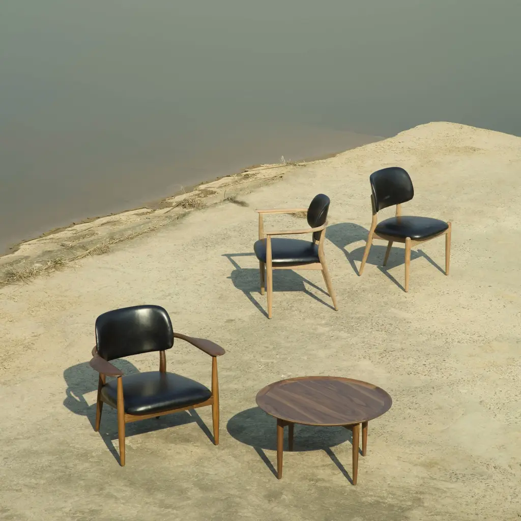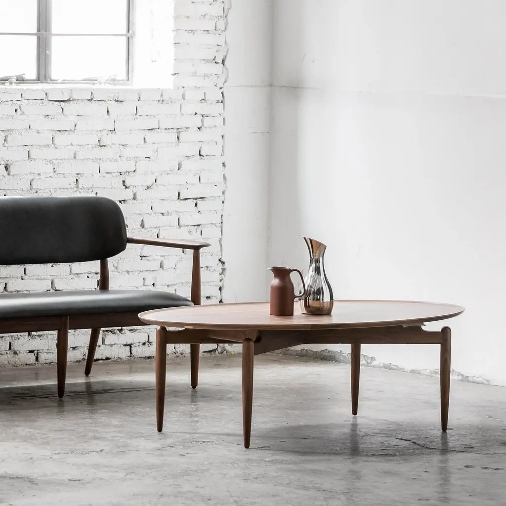 With its lovely rounded, tray-style rimmed tabletop, Slow Coffee Table reflects its origins as part of the design scheme for famed restaurant 108 in Denmark's capital envisioned by studio Space Copenhagen. Set on narrow turned legs that elevate and support the top surface, the table's lines reflect the Stellar Works collection's melding of mid-century Danish and classic Japanese elements. A true union of heritage and craft, with a solid wood frame and veneer laminate top in either walnut or ash in a variety of expressive finishes.