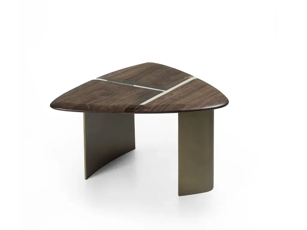 Small Coffee Table With Wooden Top And Burnished Bronze Base