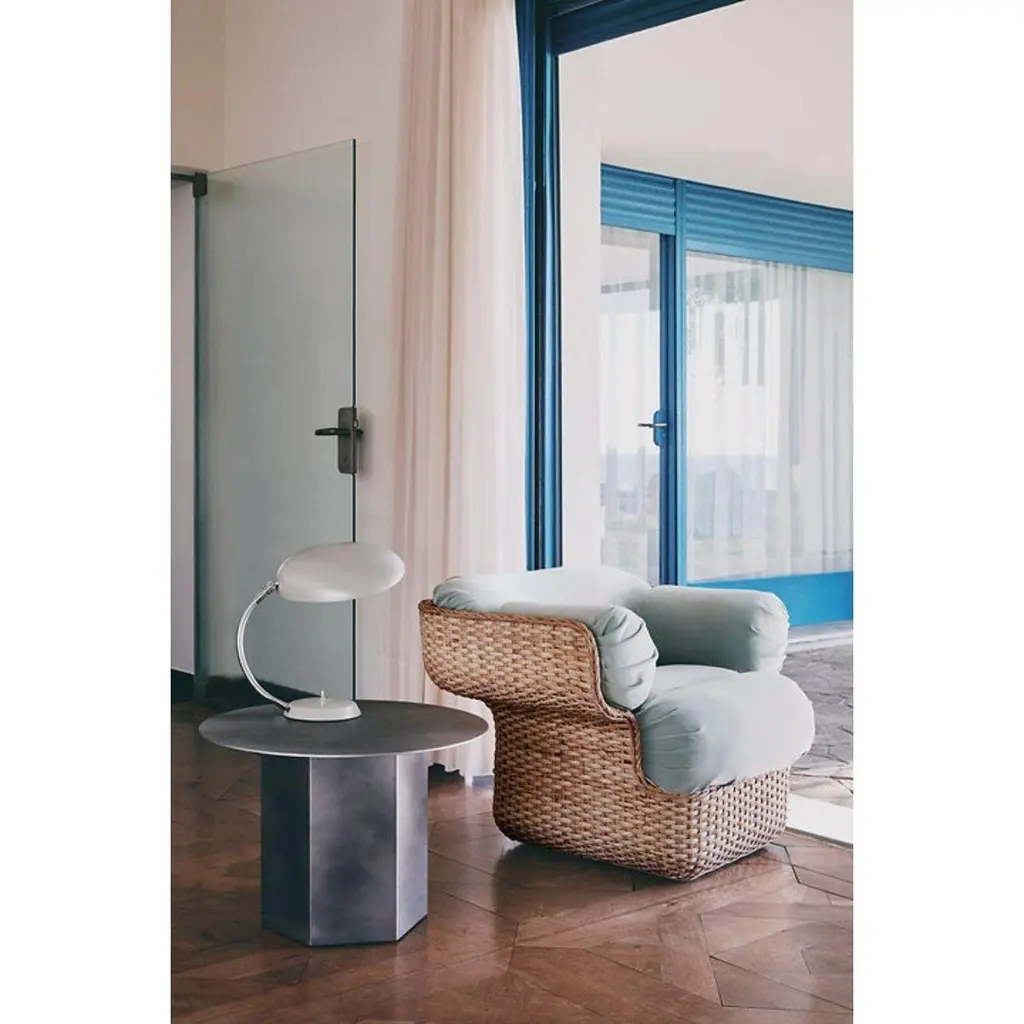 Small Steel 'Epic' Coffee Table in Misty Grey by Gamfratesi for GubiDesigned by Danish-Italian duo GamFratesi, the Steel 'Epic' Table series for Gubi is executed in solid steel. The metal is galvanized, lacquered, and hand-finished to create a contemporary take on classical architectural elements. The hexagonal base and a circular top combine to create a striking sculptural piece that carries a subtle reference to the iconic columns of Ancient Greece. The varying heights and diameters and finishes within the 'Epic' table collection mean a single monochromatic table can stand alone or be combined in dynamic clusters of differing material, height and color.Price is per item. Available in unlimited quantities in choice of earthy red, midnight steel, or misty grey. This listing is for the small 'Epic' coffee table in misty grey. In-stock lead time 12-16 weeks. Out of stock can add additional 16 weeks or more. For time-sensitive projects, kindly inquire prior to purchasing.Made to order. All sales final.