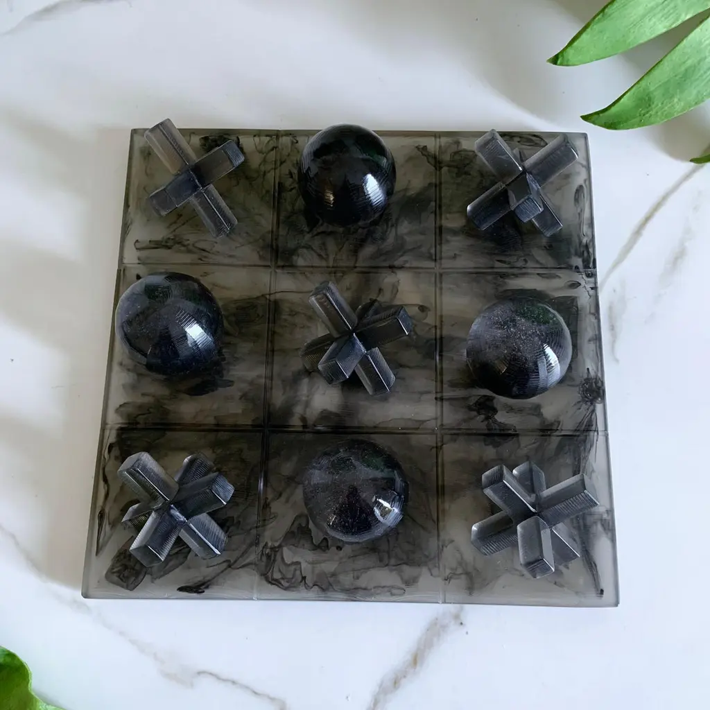Smoke With Black Marble Texture Resin Tic Tac Toe By Paola Valle