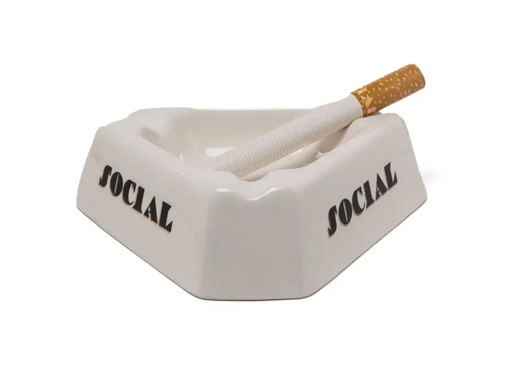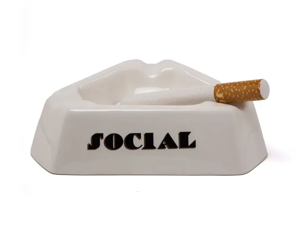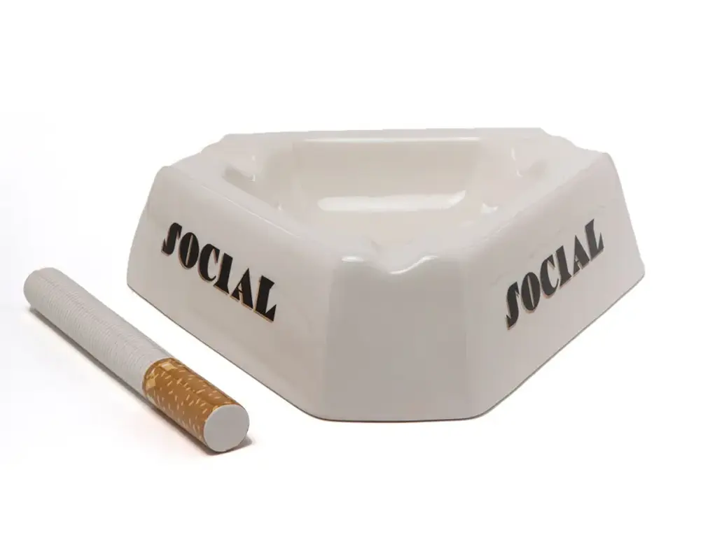 Social Smoke is a porcelain centerpiece.Use it as an ashtray for heavy smokers, a fruit bowl, a catchall tray—or, best of all, as a piece of art for social smokers! An ironic conversation piece that your coffee table simply can't do without.