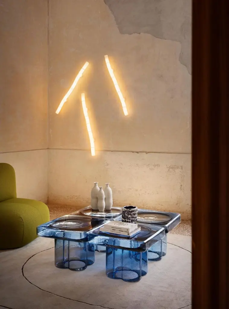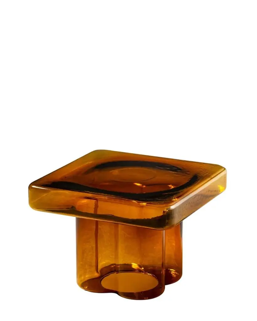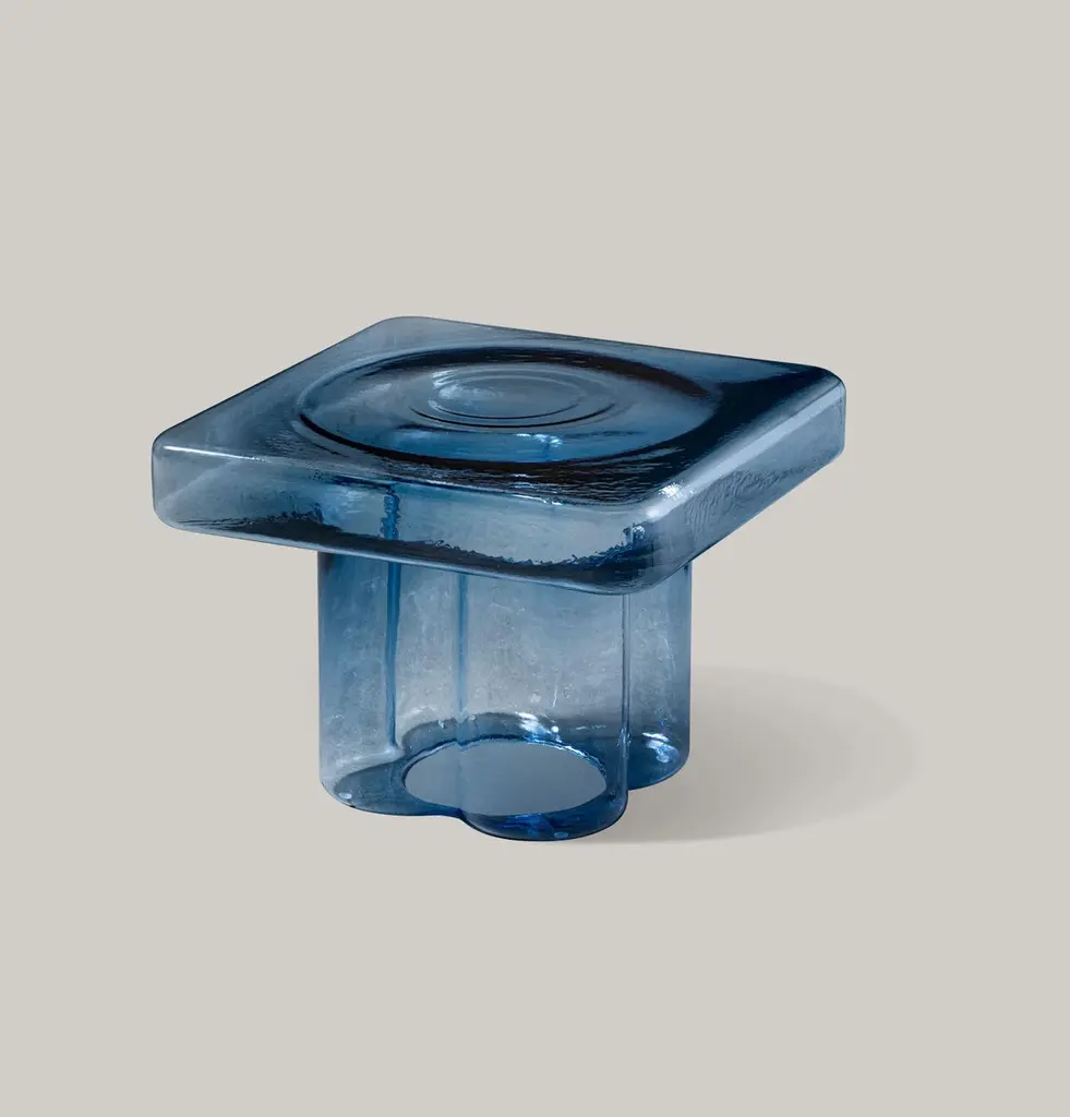 The principle remains the same: a single volume, upside down, in beautifully blown glass. But this time there are four stems, and four curved corners to delineate the new top. It is still Soda, but it wants to get up close and personal: you can extend it by matching pieces together, or create sophisticated compositions by mixing the different shapes.Available in different options:Finish:• Amber Blown• Amethyst• Blue Blown• Petrol Green