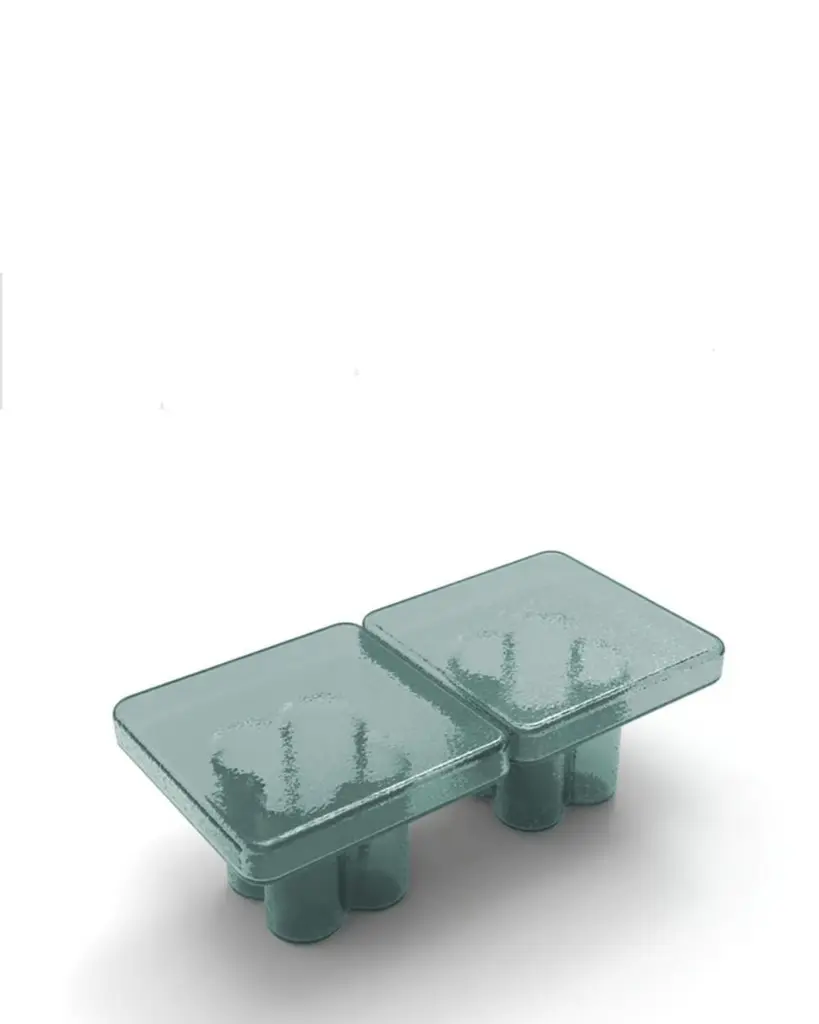 Soda Blown Murano Glass Set Of Two Square Coffee Table By Yiannis Ghikas