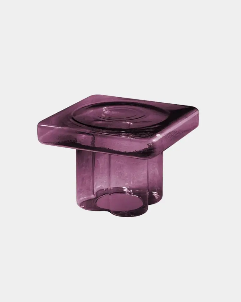 The principle remains the same: a single volume, upside down, in beautifully blown glass. But this time there are four stems, and four curved corners to delineate the new top. It is still Soda, but it wants to get up close and personal: you can extend it by matching pieces together, or create sophisticated compositions by mixing the different shapes.Available in different options:Finish:• Amber Blown• Amethyst• Blue Blown• Petrol GreenDIMENSIONS:53x53x40h cm