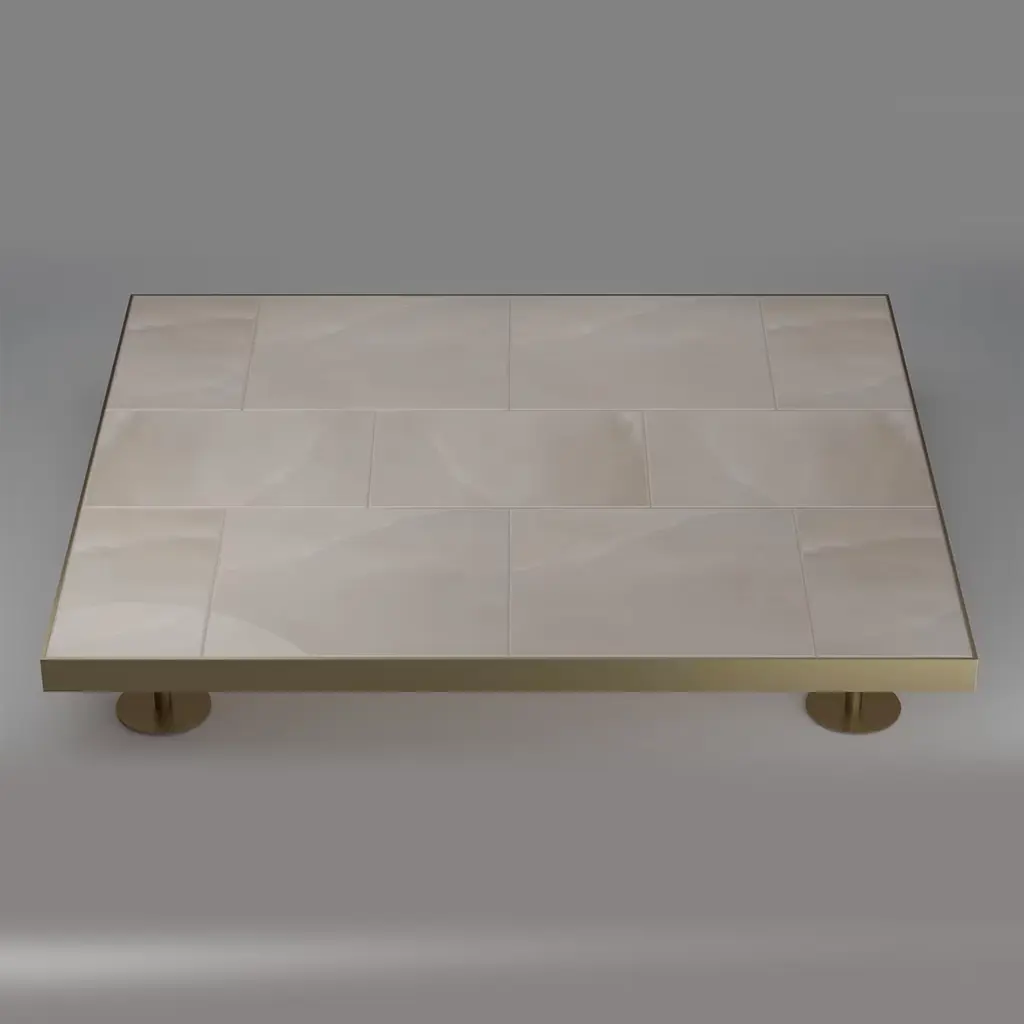 The ethereal beauty of white onyx defines this extraordinary coffee table. Its translucent slabs, adorned with natural veining, reflect light to create a luminous and ever-changing effect. Supported by a dark steel base, the design balances the material's delicate elegance with a bold structural presence. Perfect for refined living spaces, this piece offers an exquisite touch of luxury and can be tailored with specific dimensions to suit diverse interior needs.